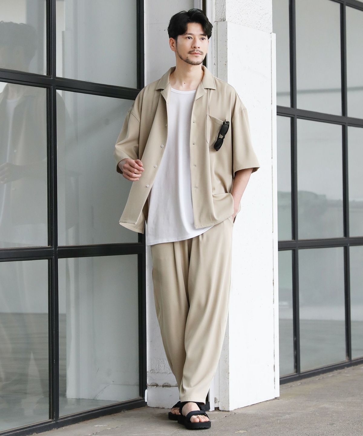 オープンカラー半袖シャツ/タンクトップ/ワイドパンツ 3点セットアップ