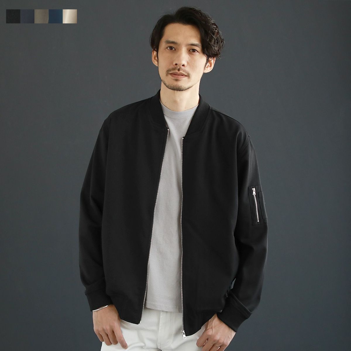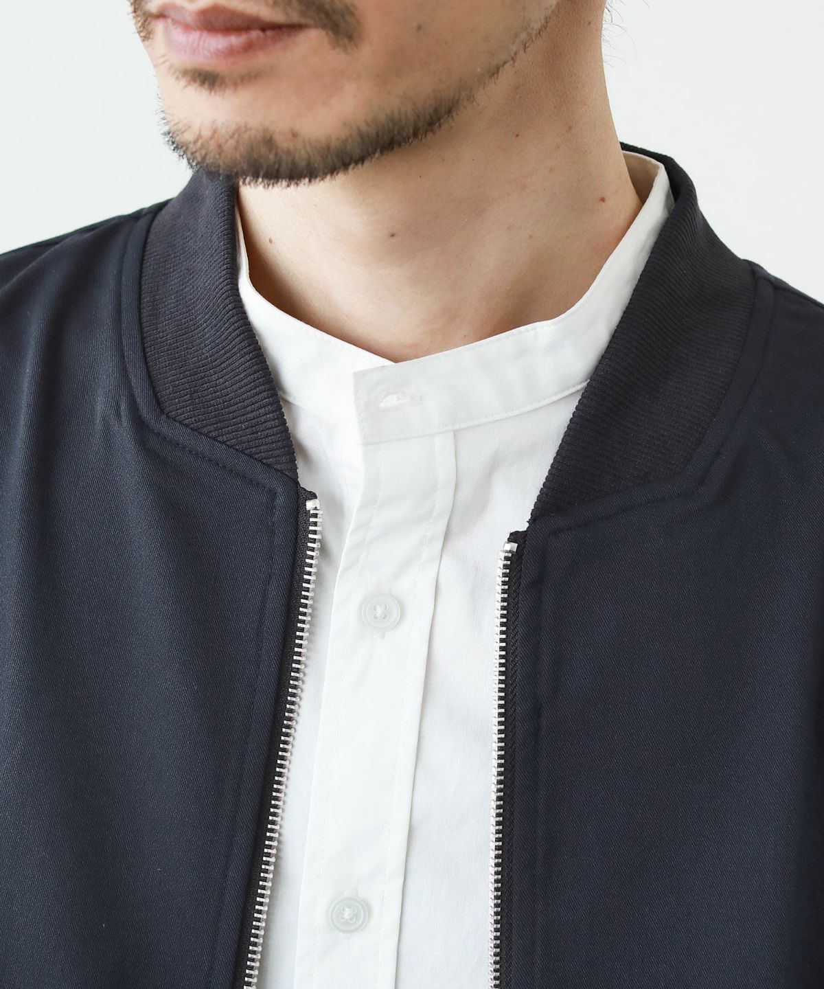 ストレスフリーな着心地のストレッチブルゾン。胸囲にゆとりを持たせつつも、スッキリと美しいシルエットを生み出すサイジングです。MA-1のミリタリー感を抑えたスタイリッシュな着こなしを楽しめます。