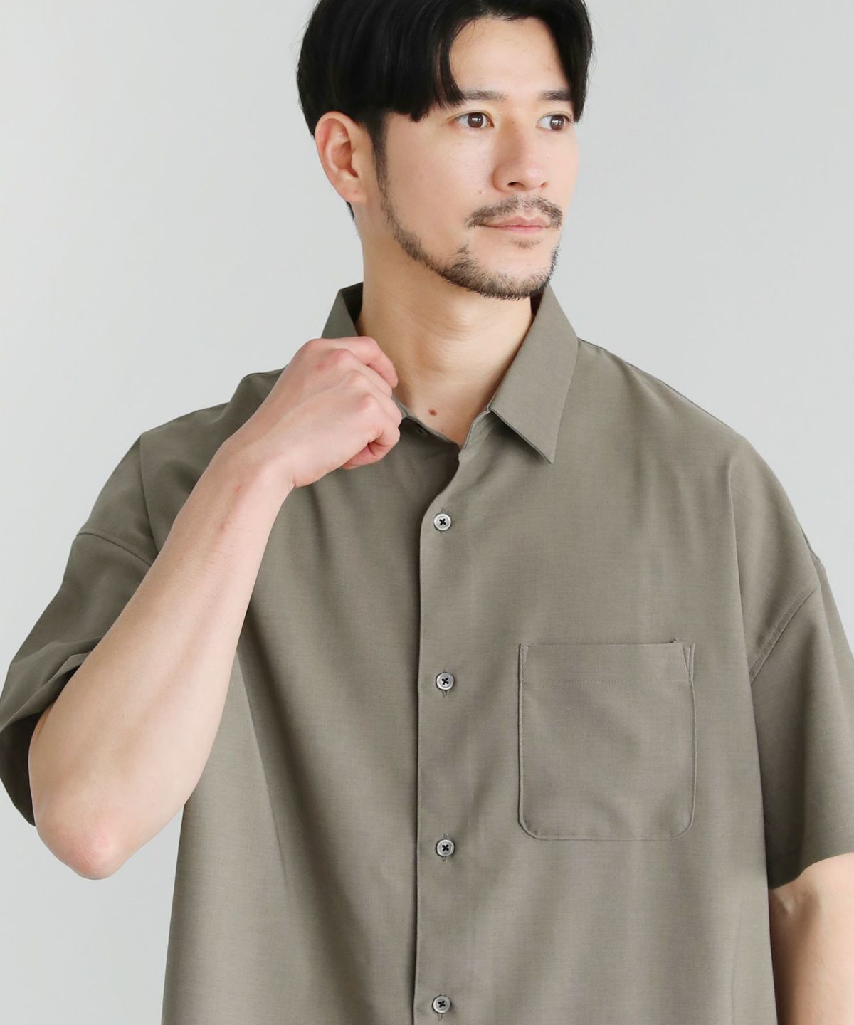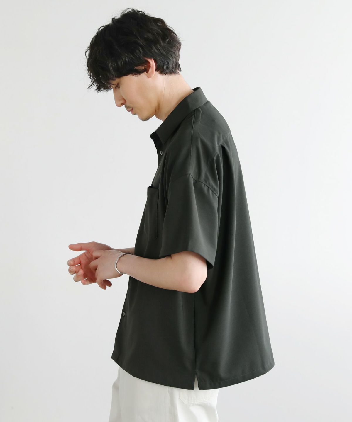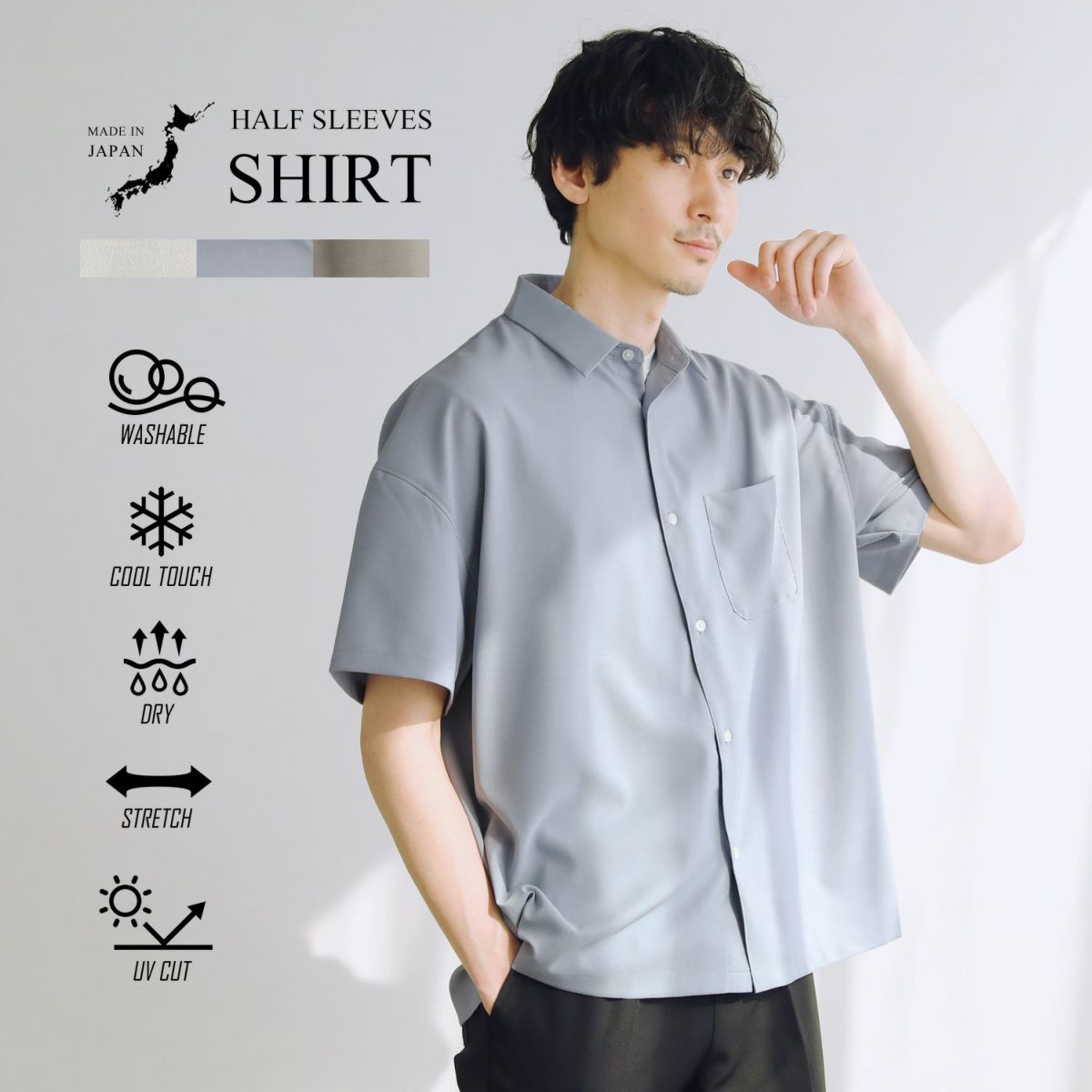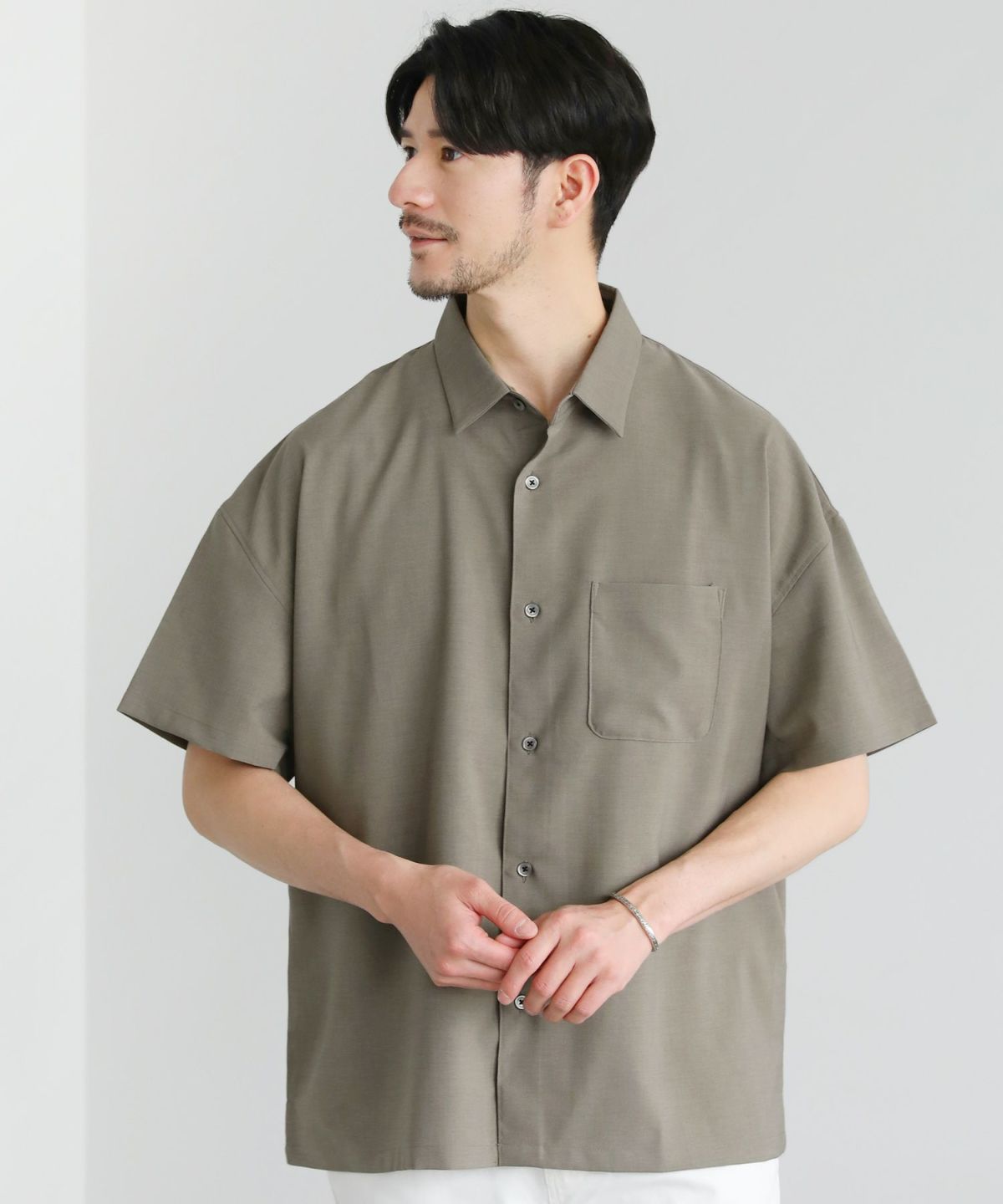 涼し気な印象のリネンライク生地を用いた、夏らしい半袖シャツ。肌に触れるとひんやり感じられる接触冷感生地でもあり、着心地まで涼しい一着です。今回の生地は他にもUVカット、ウォッシャブル、抗ピリングといった機能を併せ持ち、さらにはストレッチ性、速乾性、吸汗性にも優れた高機能生地となっております。夏のヘビロテシャツとして活躍すること間違いなしの機能性です。身幅にはゆとりを持たせ、リラックス感溢れるゆったりシルエットにしております。日本製の丁寧な縫製で、日常的にラフに着回せるキレイめシャツに仕上げました。