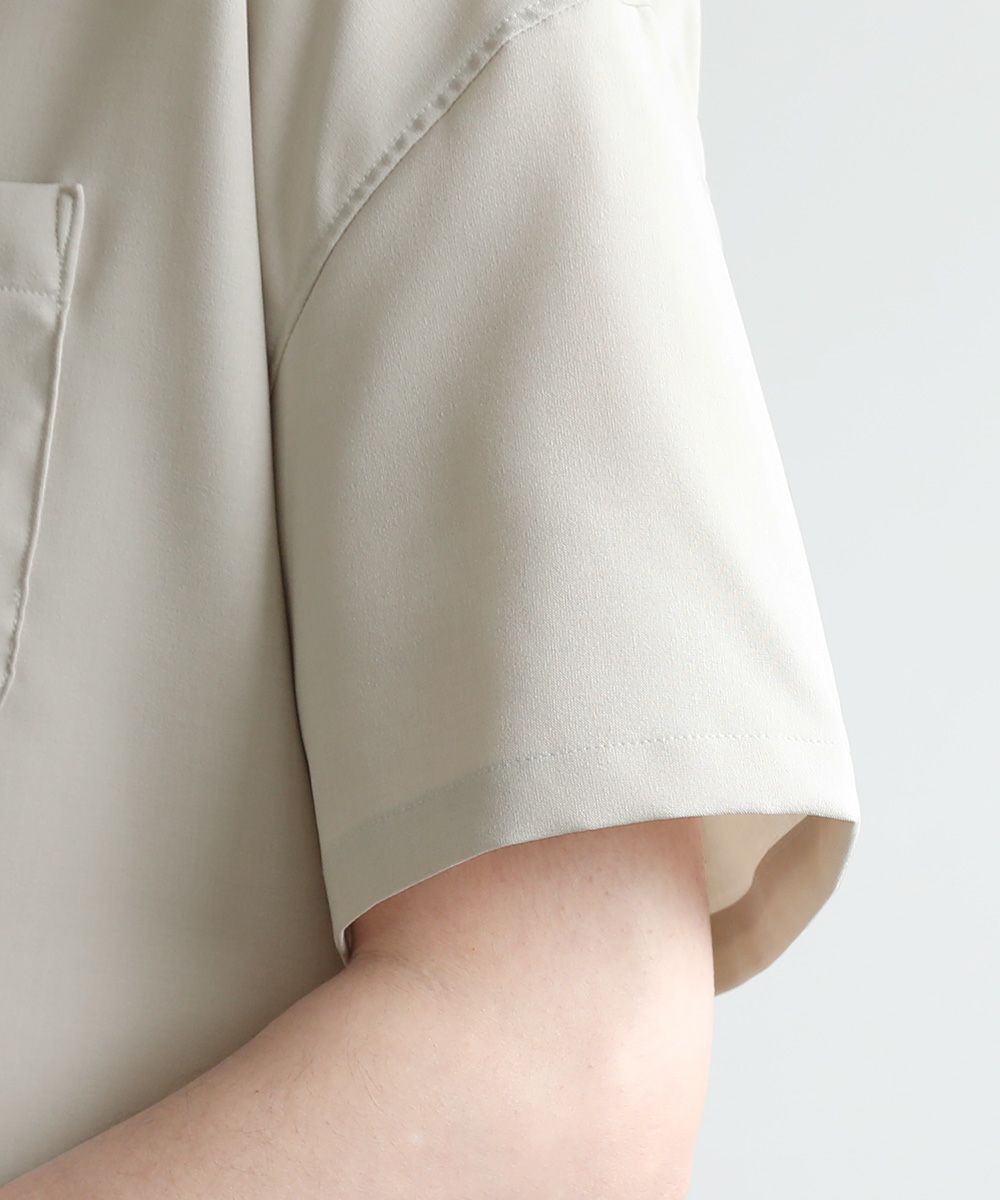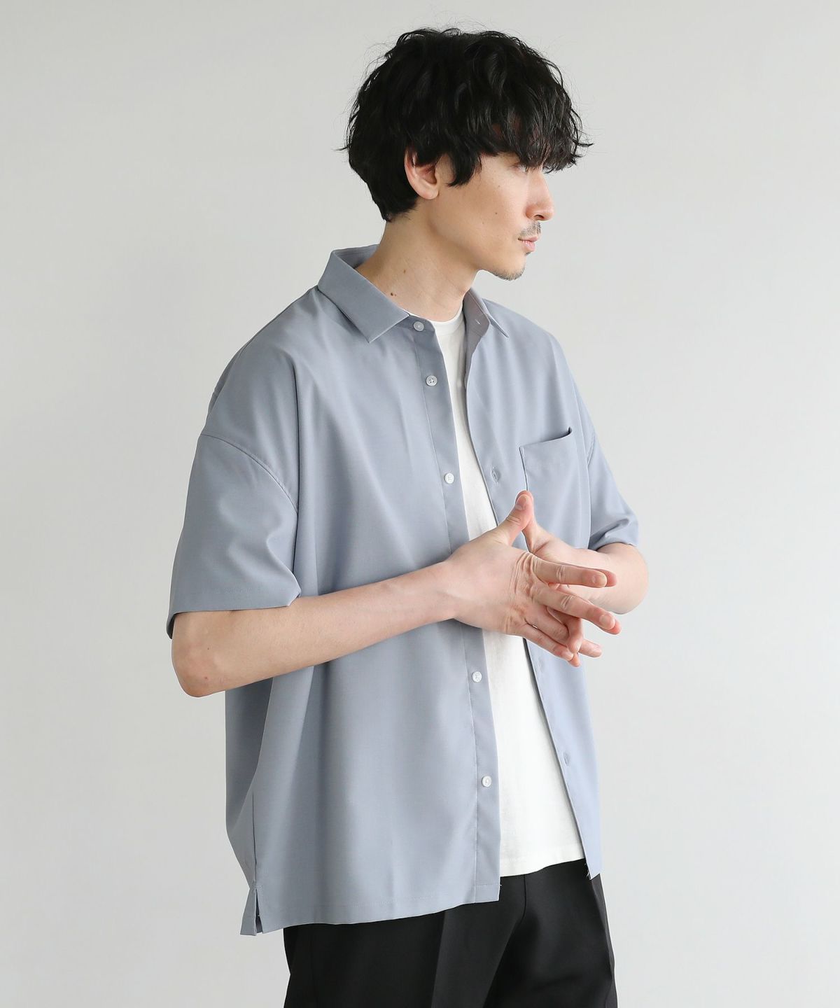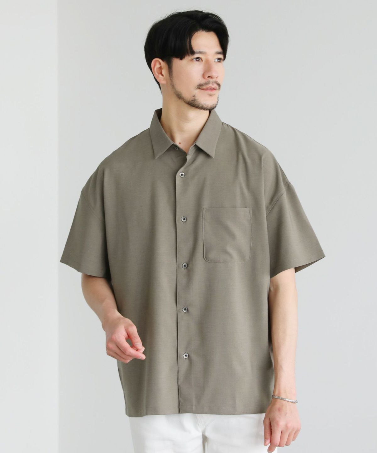 涼し気な印象のリネンライク生地を用いた、夏らしい半袖シャツ。肌に触れるとひんやり感じられる接触冷感生地でもあり、着心地まで涼しい一着です。今回の生地は他にもUVカット、ウォッシャブル、抗ピリングといった機能を併せ持ち、さらにはストレッチ性、速乾性、吸汗性にも優れた高機能生地となっております。夏のヘビロテシャツとして活躍すること間違いなしの機能性です。身幅にはゆとりを持たせ、リラックス感溢れるゆったりシルエットにしております。日本製の丁寧な縫製で、日常的にラフに着回せるキレイめシャツに仕上げました。