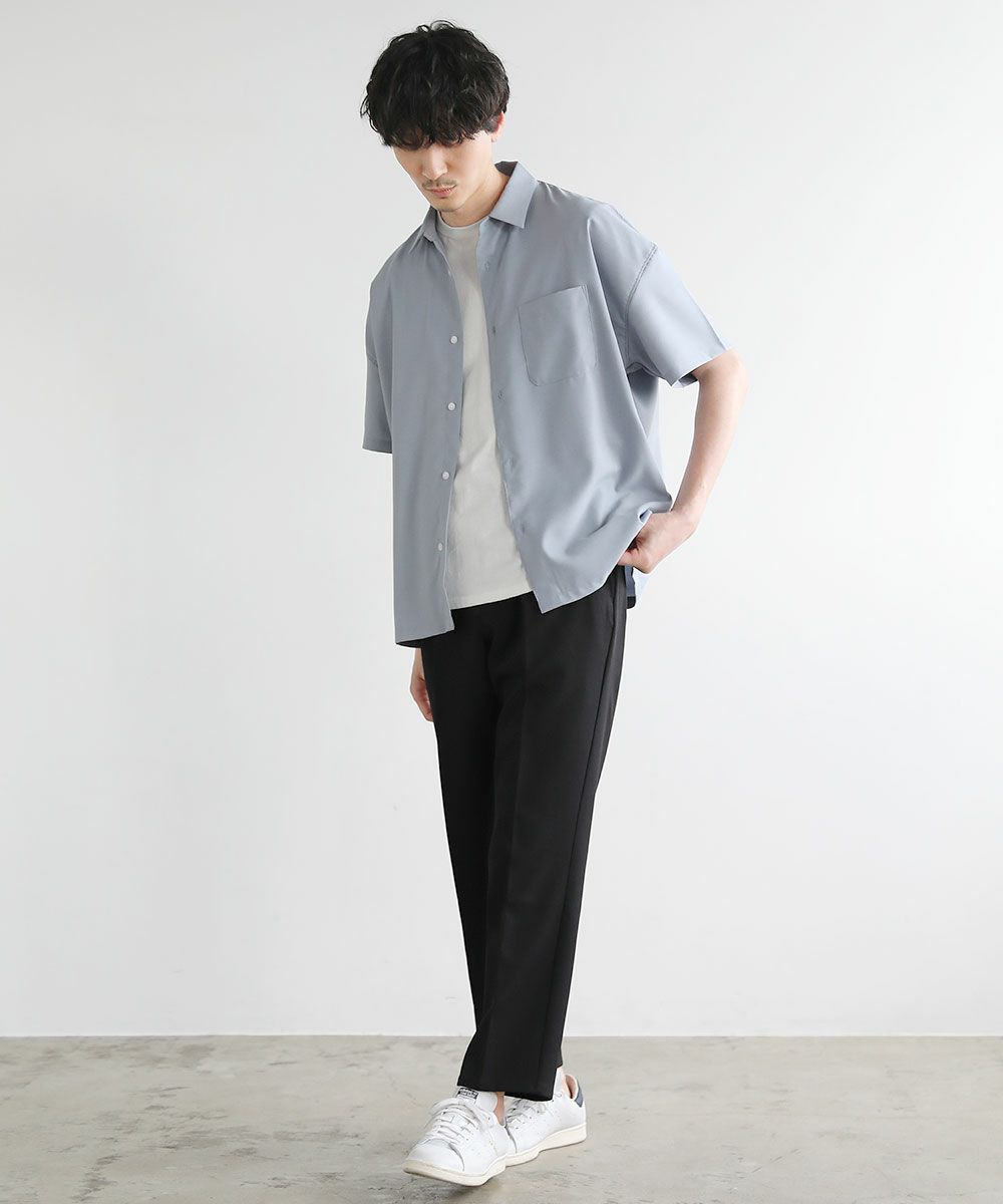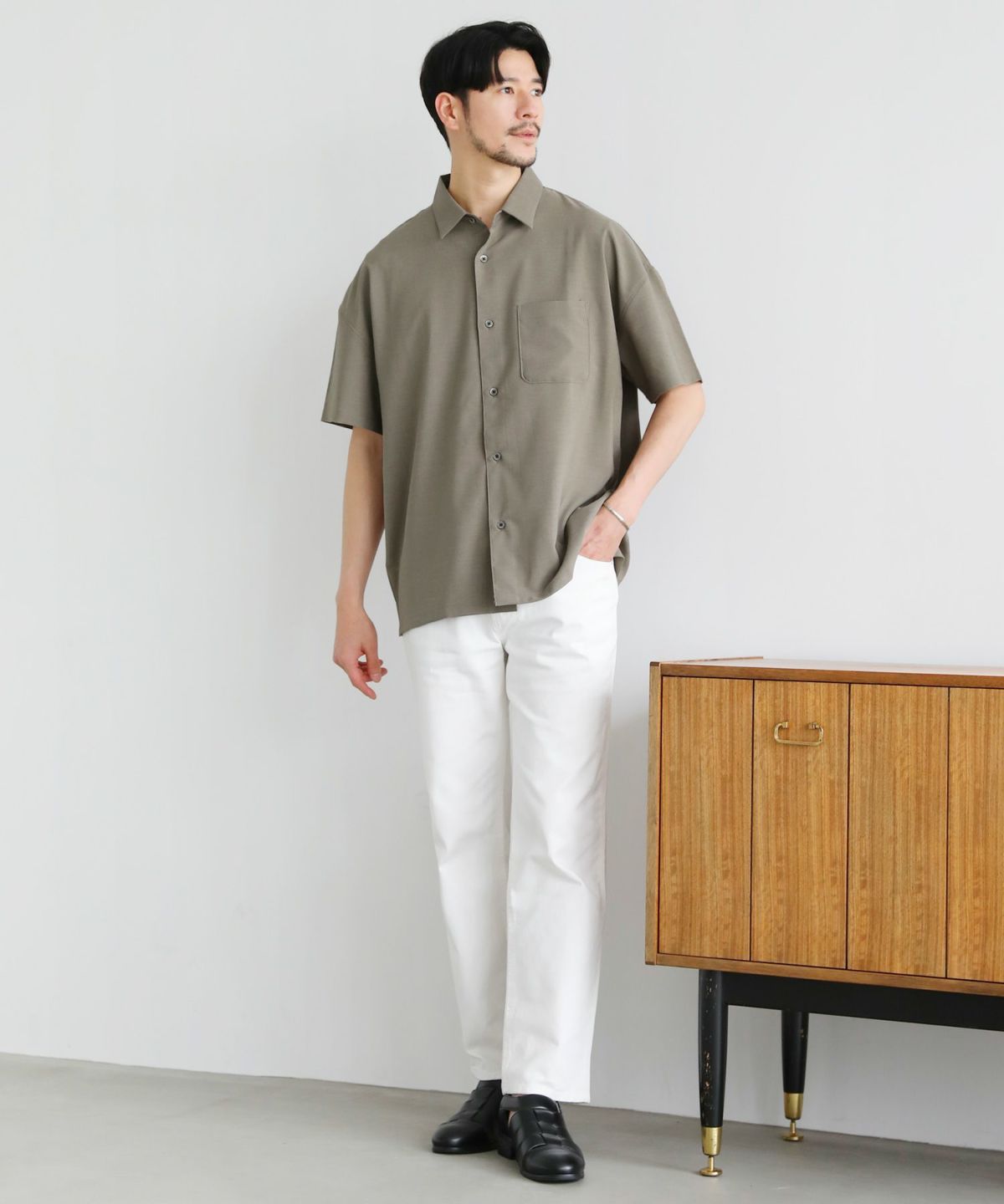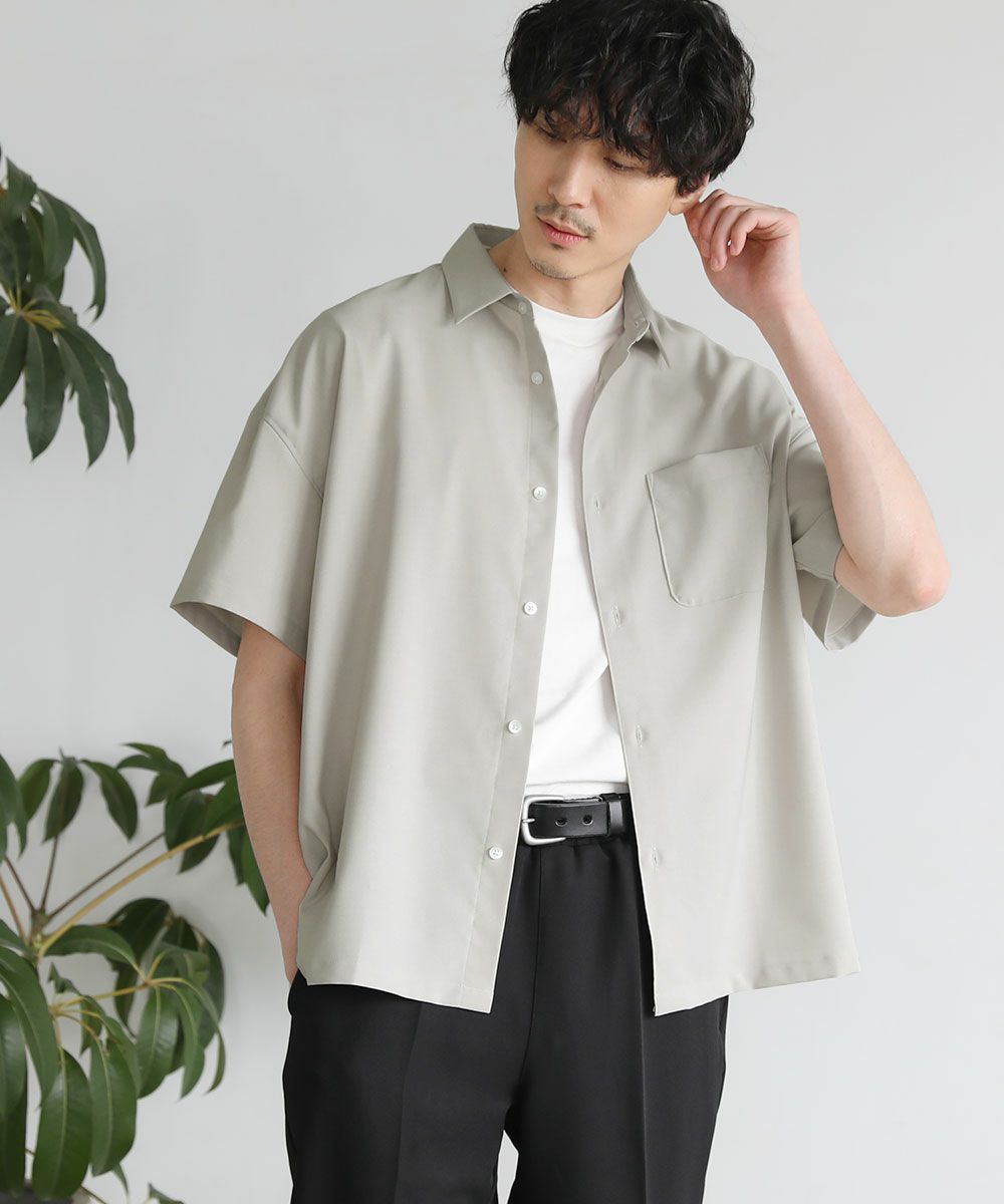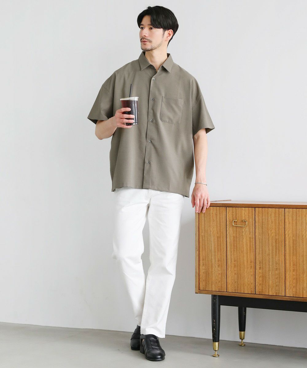 涼し気な印象のリネンライク生地を用いた、夏らしい半袖シャツ。肌に触れるとひんやり感じられる接触冷感生地でもあり、着心地まで涼しい一着です。今回の生地は他にもUVカット、ウォッシャブル、抗ピリングといった機能を併せ持ち、さらにはストレッチ性、速乾性、吸汗性にも優れた高機能生地となっております。夏のヘビロテシャツとして活躍すること間違いなしの機能性です。身幅にはゆとりを持たせ、リラックス感溢れるゆったりシルエットにしております。日本製の丁寧な縫製で、日常的にラフに着回せるキレイめシャツに仕上げました。