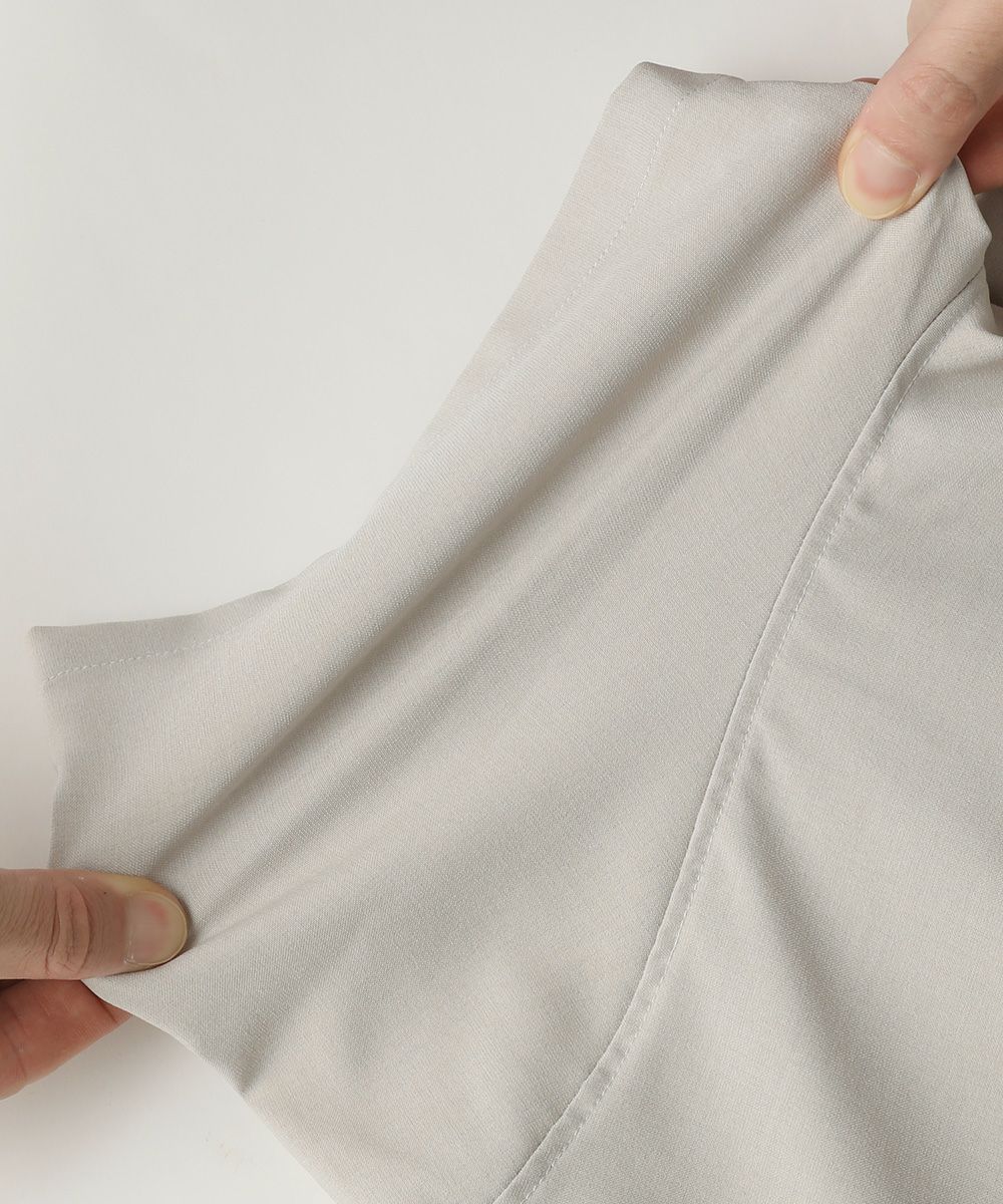 Reflax®ECOという高機能生地を採用しています。ポリエステル100%でありながらも天然素材の麻を用いているかのような素朴な風合いがあり、ナチュラルな印象を与えます。ご自宅でお洗濯が可能な上にアイロンが不要なイージーケアファブリックで、毛羽立ちが少ないため毛玉にもなりにくく、気兼ねなく日常的にご着用いただける生地です。原料の一部にペットボトルや繊維くずなどをアップサイクルしたものを取り入れた、環境に配慮した生地でもあります。