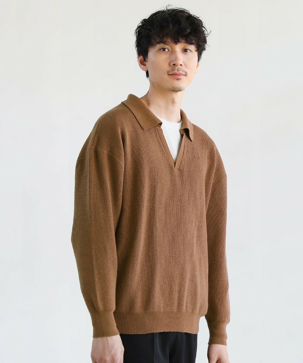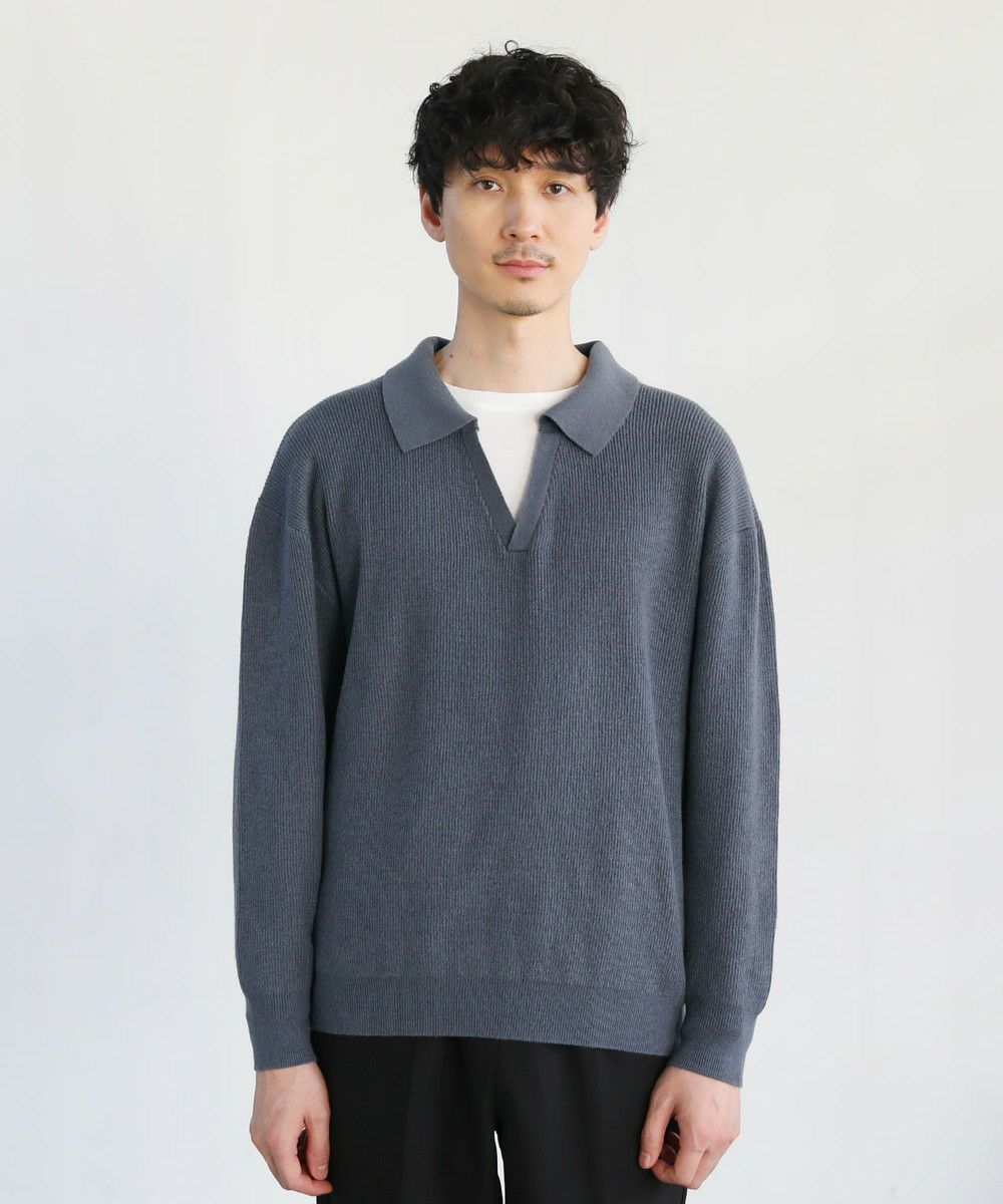 SPUでご好評を頂いているウォッシャブルニットシリーズから、スキッパーデザインの長袖ニットのご紹介です。