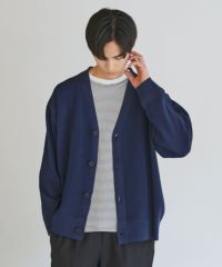 広めの身幅でゆったりとしたシルエットにしております。締め付け感のないラクな着心地で脱ぎ着もしやすいのでお部屋でのくつろぎタイムにお使いいただくのもおすすめ。コンビニなどへのちょっとした外出時にライトアウター感覚でさっと羽織る一着としてもちょうどよいカーディガンです。