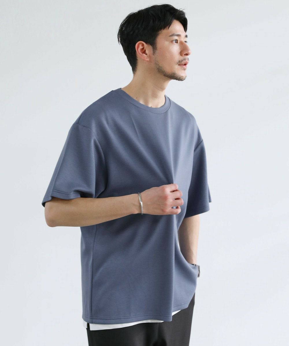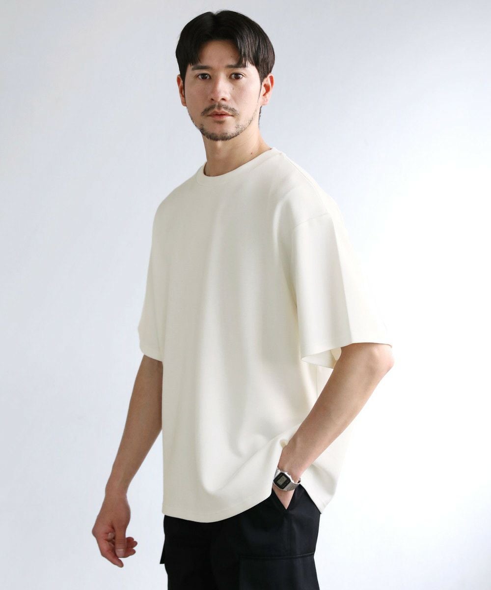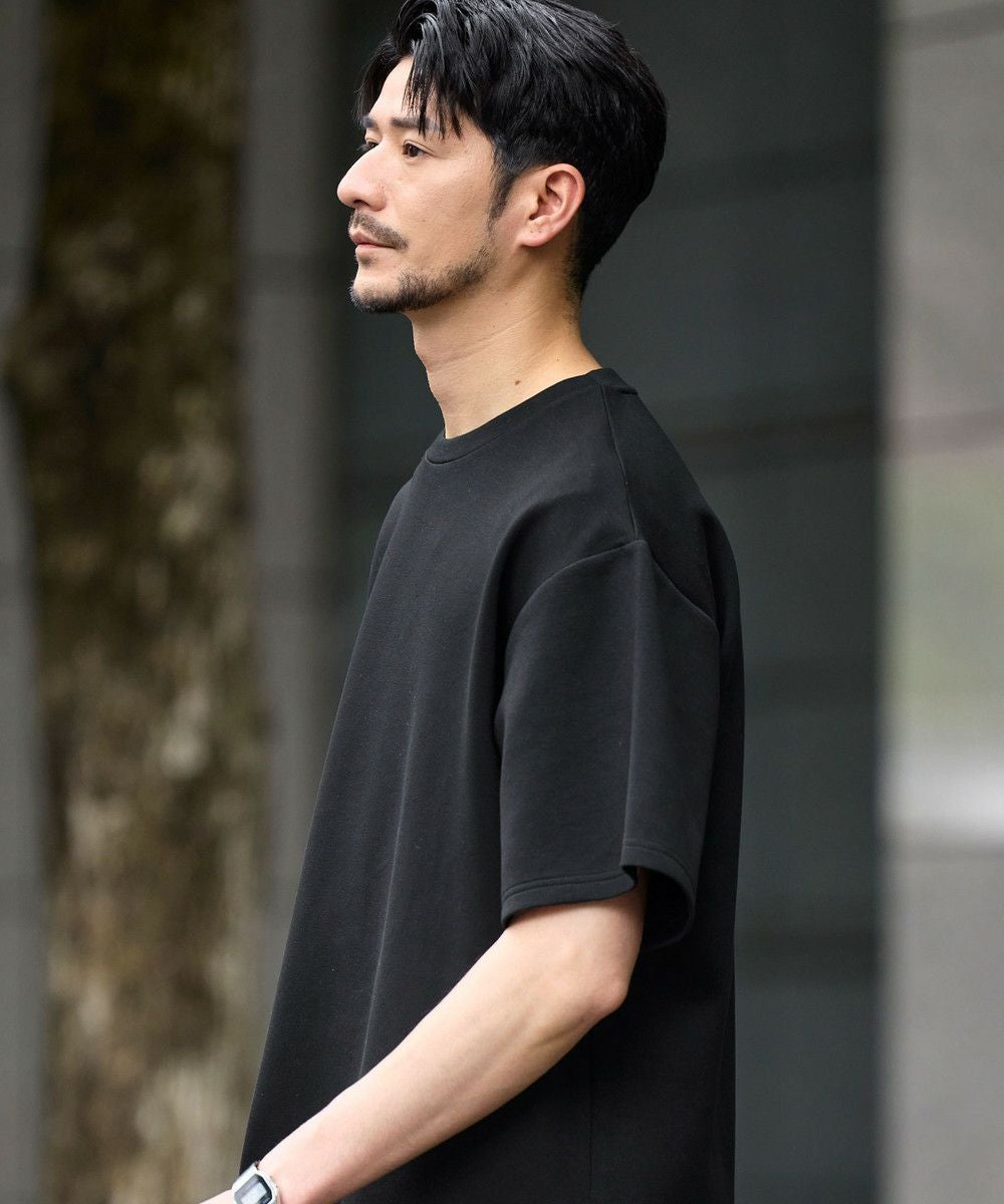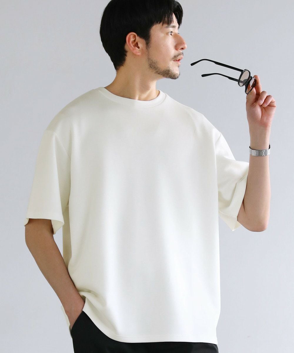 ゆったりとさせたシルエットとポリウレタン由来の伸縮性で身動きがとりやすく、動作にストレスを感じさせません。空気を含んだようなふくらみと適度なハリがある生地で形が崩れにくいため、どの角度から見ても立体的でしゃんとした印象に。シワにもなりにくく着ている間キレイめなシルエットをキープしてくれる、大人な表情のTシャツです。