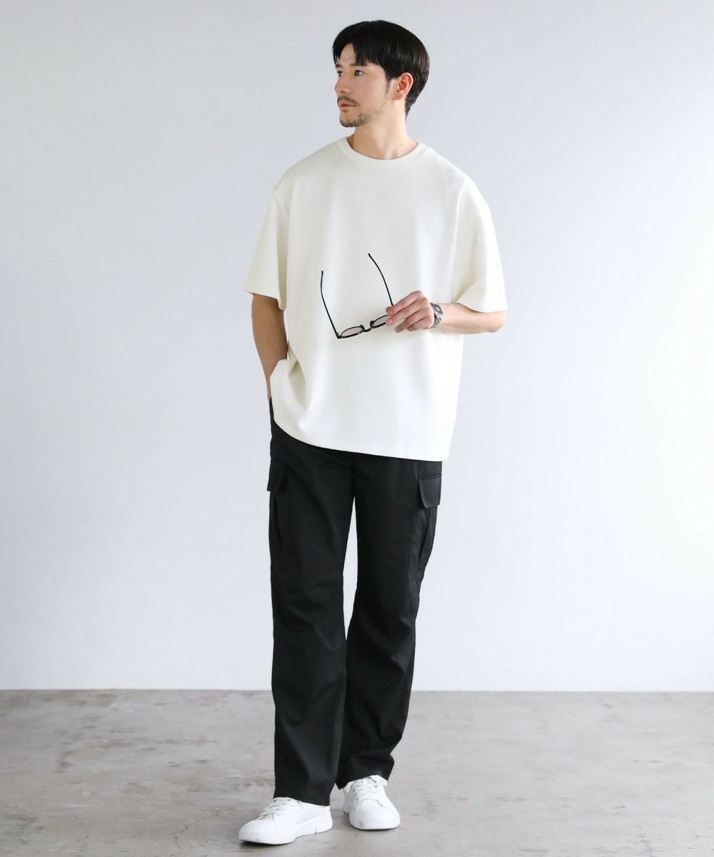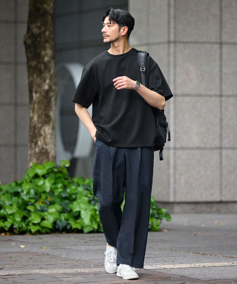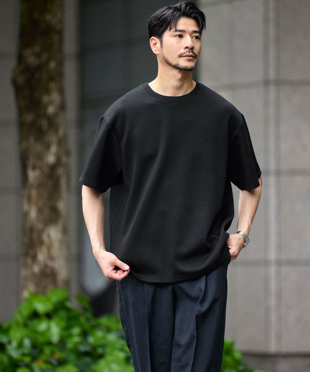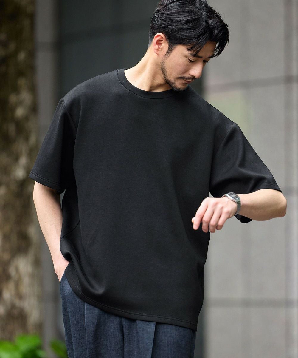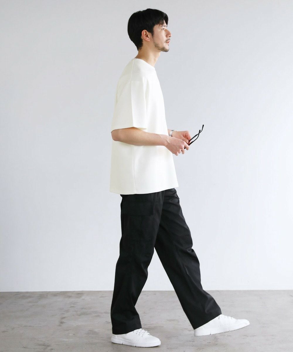 ゆったりとさせたシルエットとポリウレタン由来の伸縮性で身動きがとりやすく、動作にストレスを感じさせません。空気を含んだようなふくらみと適度なハリがある生地で形が崩れにくいため、どの角度から見ても立体的でしゃんとした印象に。シワにもなりにくく着ている間キレイめなシルエットをキープしてくれる、大人な表情のTシャツです。