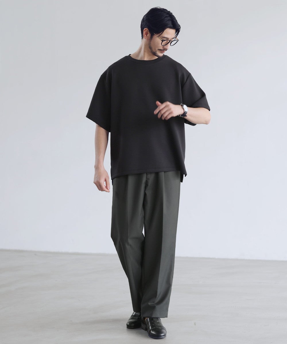 【セットアップ対応】【防シワ・抗ピリング・ストレッチ・ウォッシャブル】高機能フクレ二重織Vネックボタンカーディガン