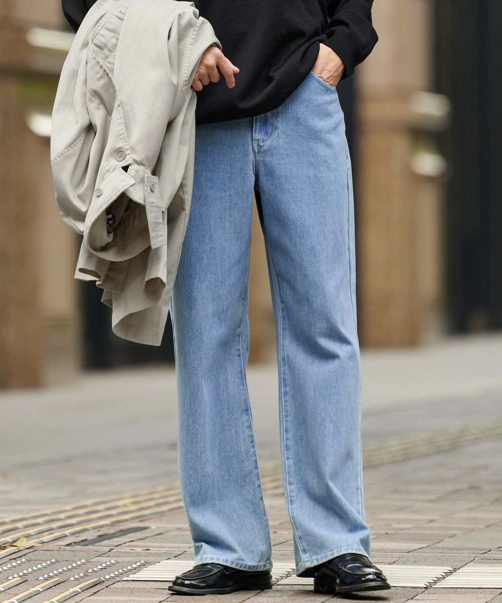デニムらしいカジュアルな装いはもちろんのこと、襟付きのシャツを合わせてキレイめな着こなしにも使える一本。ゆとりを持たせたリラックスフィットシルエットで旬のオーバーサイズのトップスとも相性抜群です。5ポケットやリベットなど、デニムの王道的なディテールを押さえているのでトレンドに左右されることがありません。大人のオフの日コーデに重宝すること間違いなしのアイテムです。