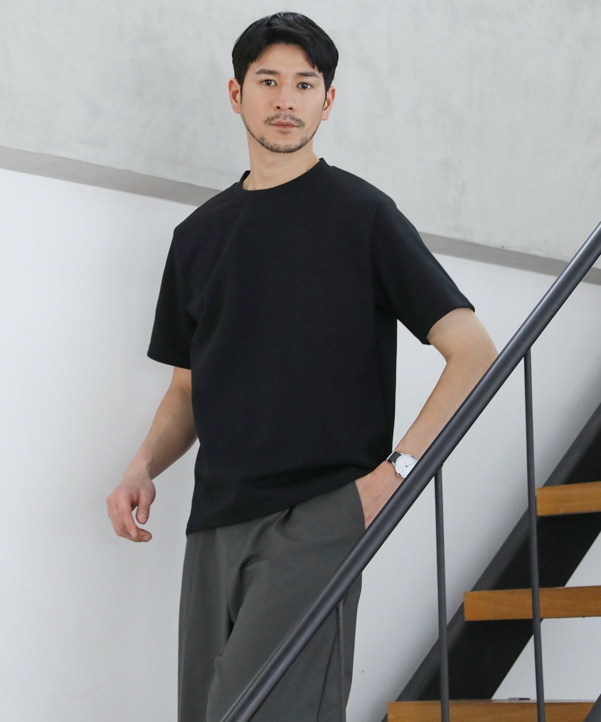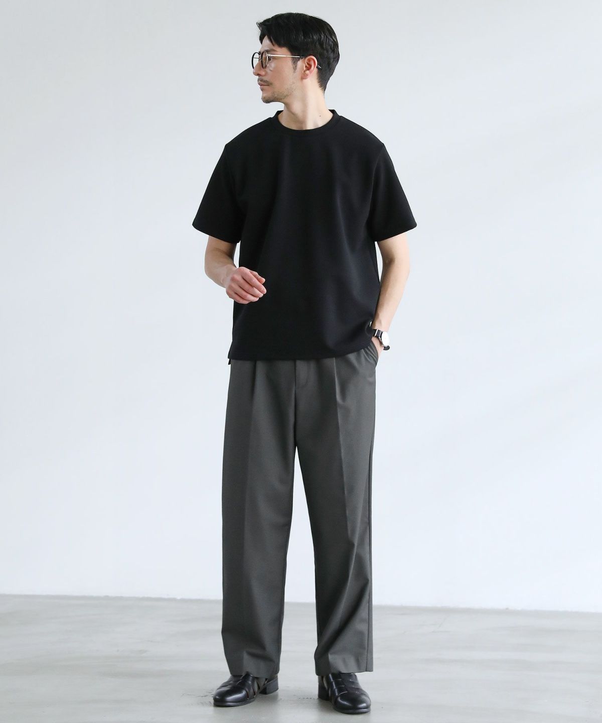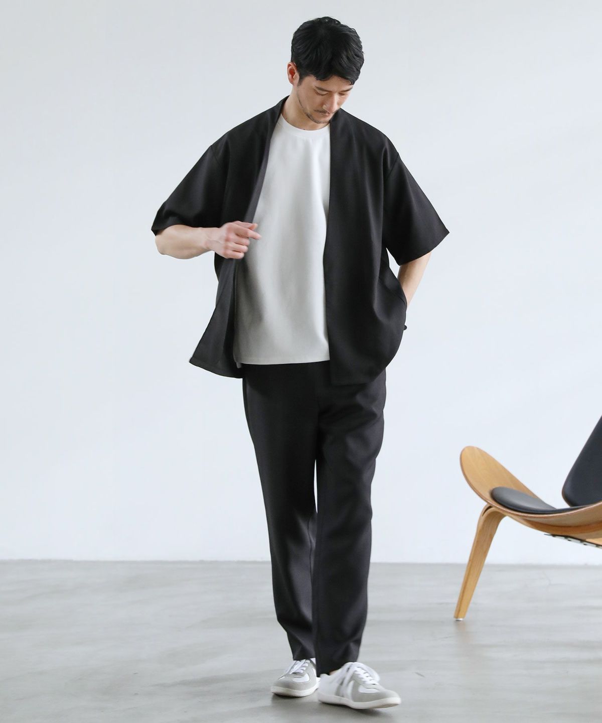 【セットアップ 2点セット】接触冷感テックリネンノーカラー半袖カーデorオープンカラー半袖シャツ/&テーパードパンツセットアップ