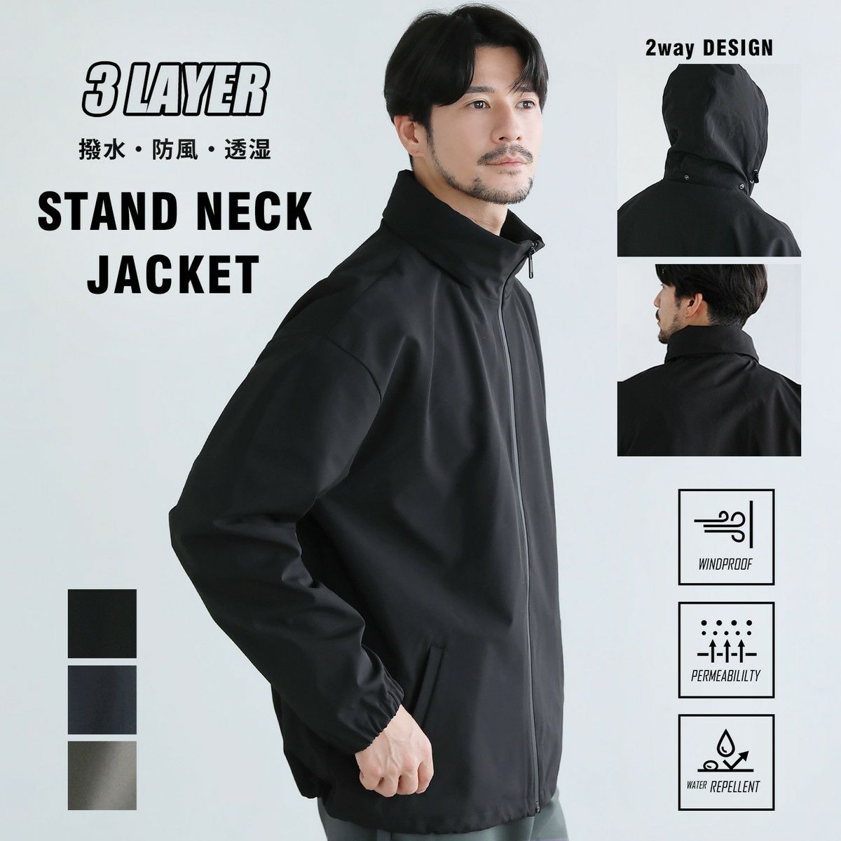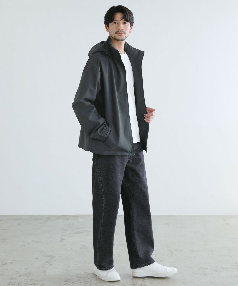 特殊な3層構造の生地を採用した、雨や風に強いハイスペックジャケットの登場です。 撥水・防風・透湿といった機能性を備え、急な天候の変化にも頼れる一枚に仕上げました。 フードは収納可能で、シーンに合わせてスタンドネックと2wayで使い分けられる仕様。また、ロゴや装飾などを削ぎ落としたミニマルなデザインは、スタイリングを選ばず都会的な印象を演出します。 アウトドアから街着まで幅広く活躍する、洗練された高機能アウターです。