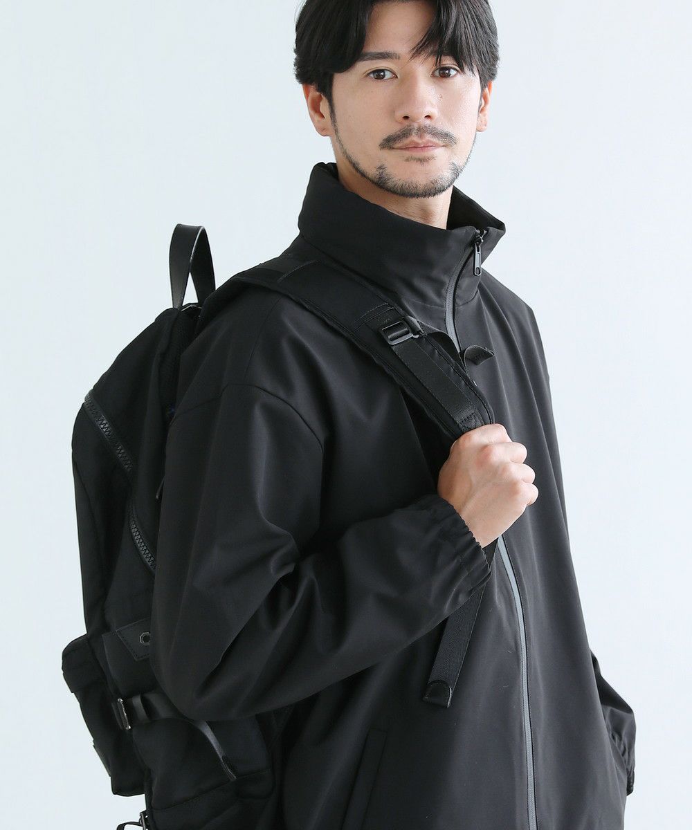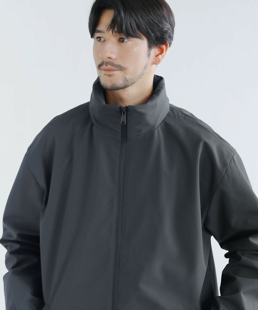 収納可能なフード付きの2wayネックデザインを採用いたしました。普段はネックに収納した状態ですっきりとしたスタンドネックジャケットに、雨天時にはフードを出すことでマウンテンパーカーのような実用性を発揮します。また、フロントに止水ジップ・袖口にゴム・裾にドローコードを配しているため、雨だけでなく冷気や風の侵入も防ぎます。細部にまで機能性を落とし込んだ、頼れるディテールが詰まった一着です。