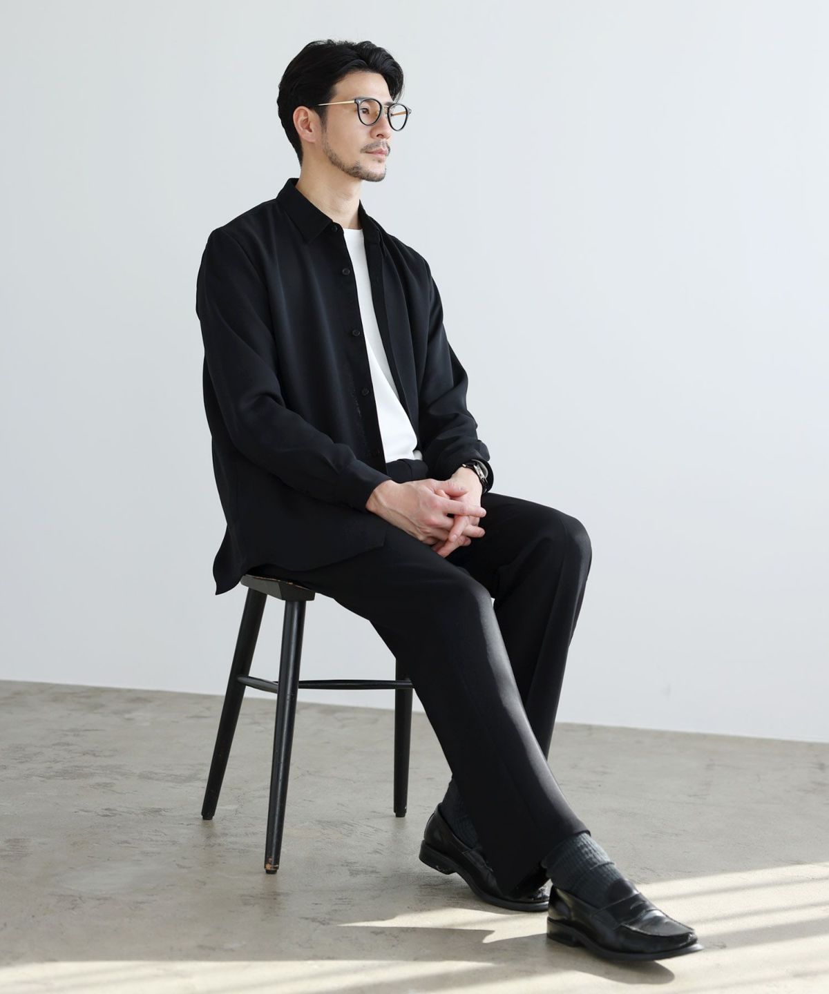 とろみ感のある生地で品の良いドレープが作り出される長袖シャツ。動く度に揺らめく生地がお洒落な印象です。襟は一番使いやすいレギュラーカラーを採用しました。裾は前後差のあるラウンドヘムデザイン。身幅にゆとりを持たせた旬のシルエットで、楽な着心地が続きます。クセのないシンプルなデザインなので、セットアップだけでなく単体でも着回しを楽しめる大人カジュアルなシャツです。