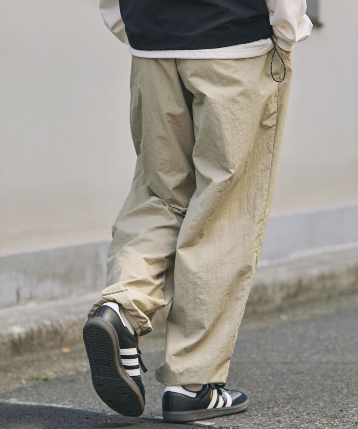 ワッシャーナイロンがナチュラルな雰囲気を醸し出す、軽くて丈夫なナイロンパンツです。