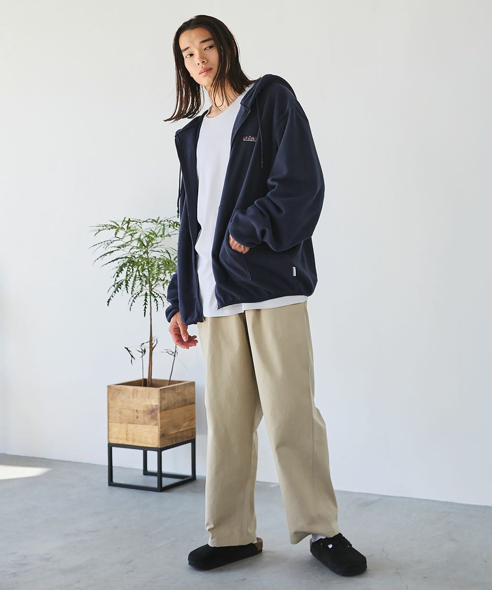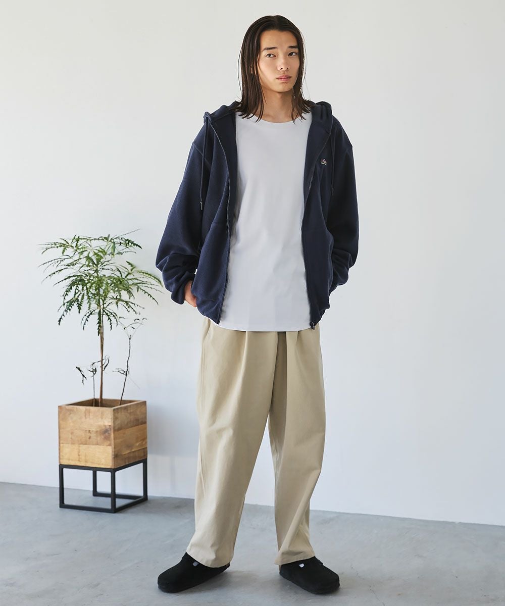 オーバーサイズトップスと相性抜群のゆったりめチノパンツ。