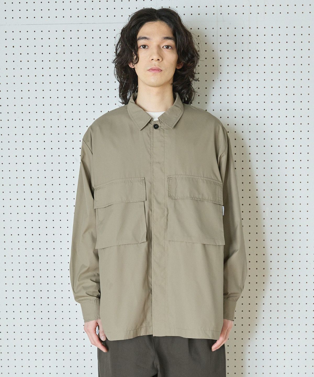 大きめなダブルポケットとブランドピスネームが特徴的な、実用性とデザイン性を兼ね備えたアイテム。ナイロンライクな軽くサラッとした着心地で、ライトアウターとしても羽織っていただけます。無駄を削ぎ落したシンプルなデザインのため、何に合わせてもしっくりくる着回し力抜群の一枚です。