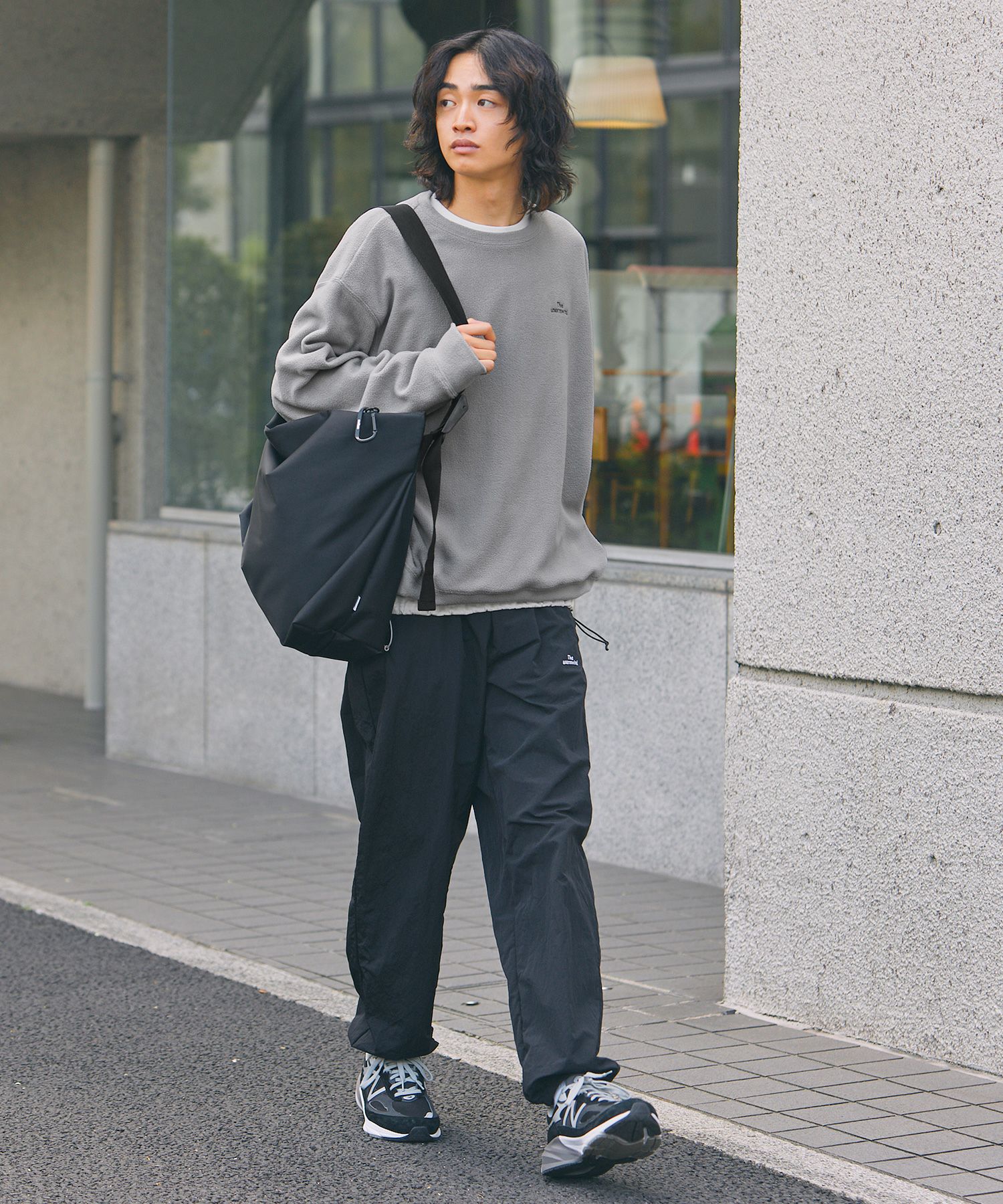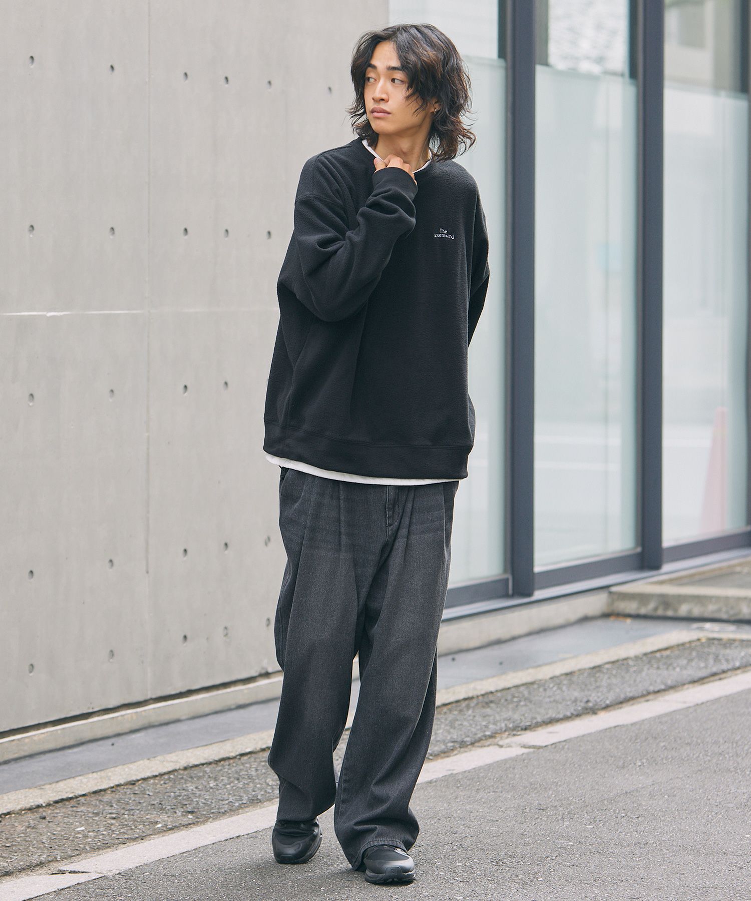 ワイドデニムやバルーンパンツ、スラックスなどと合わせたラフな着こなしがおすすめ。お家でのリラックスタイムやワンマイルアイテムとしてはもちろん、ダッドスニーカーを合わせた都会的なルックスとも相性抜群。着こなし次第で幅広いシーンにマッチする一着です。