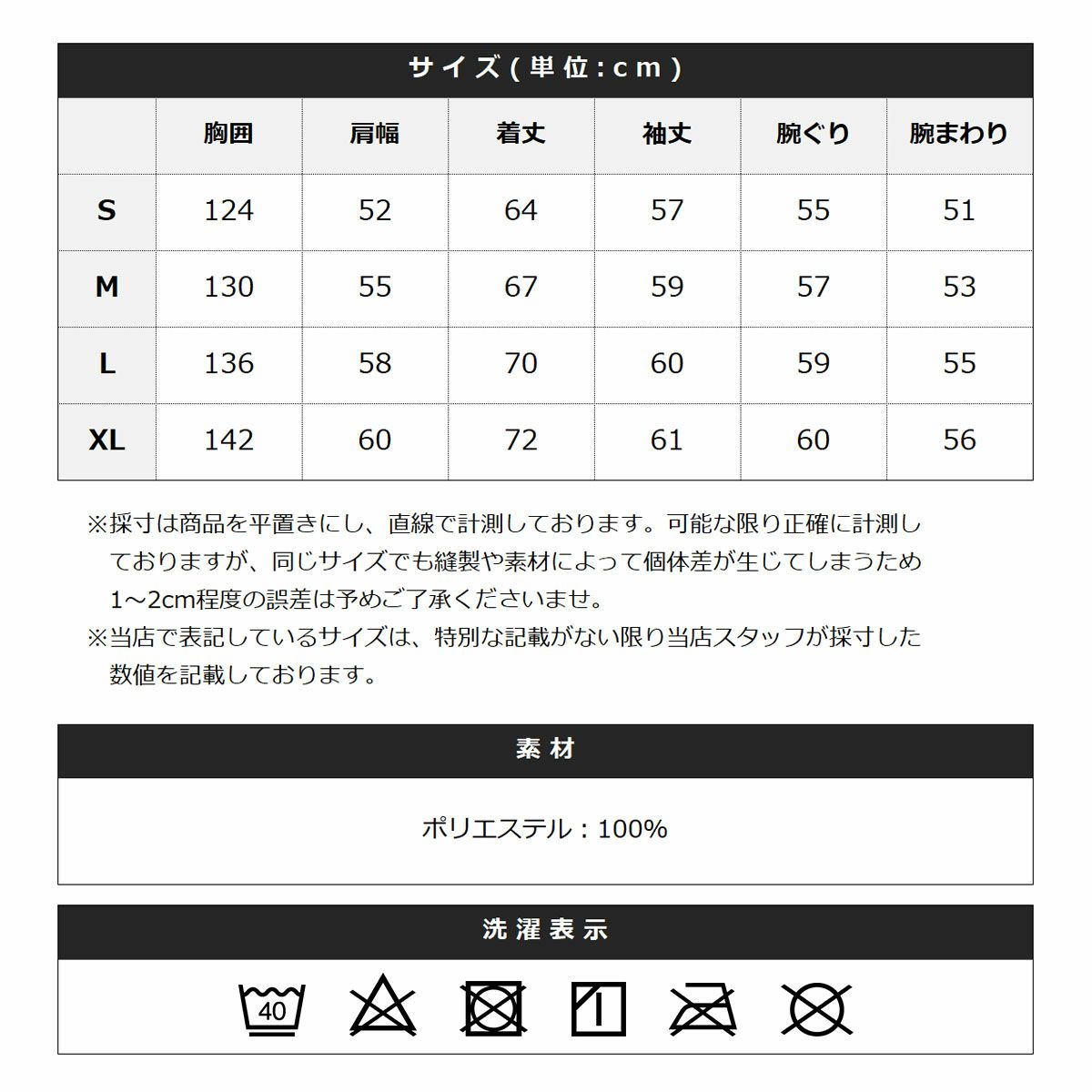 ※商品特性、縫製や素材により同サイズでも、若干の誤差が生じてしまうことを予めご了承ください。