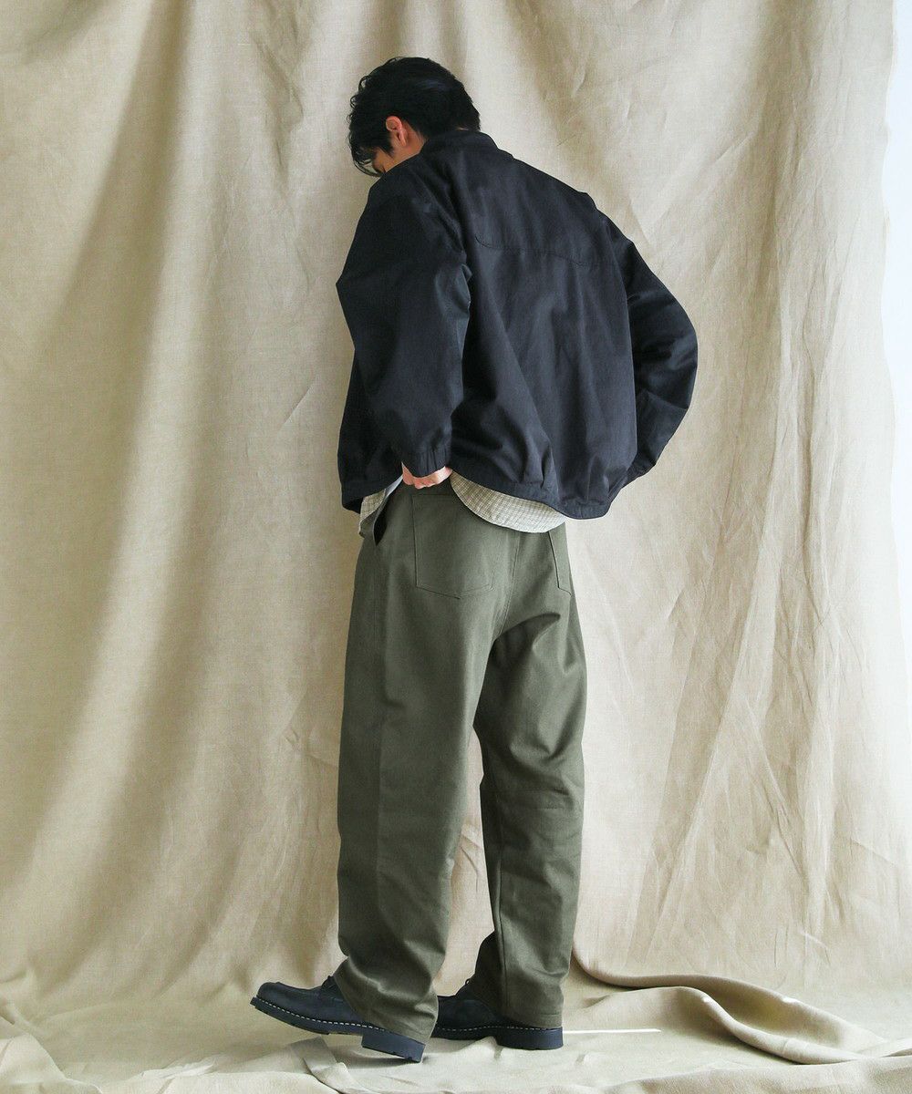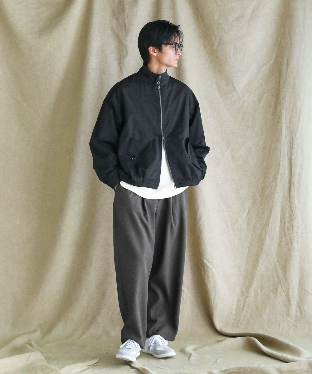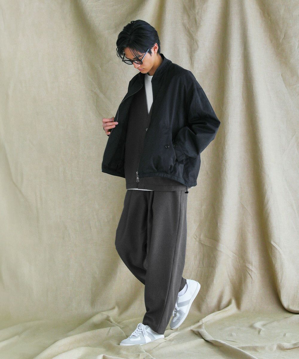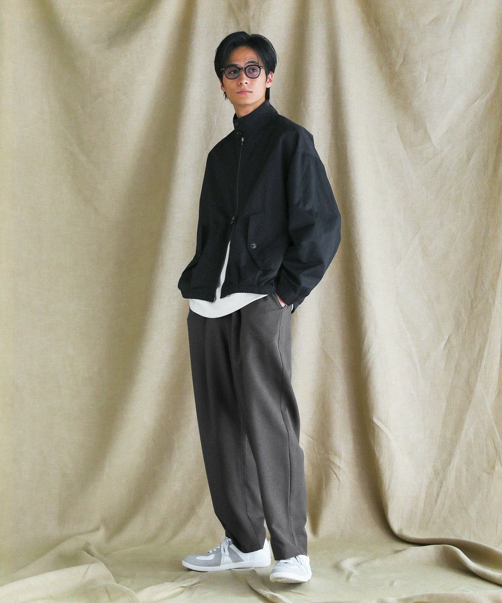 英国の名品であるBARACUTA(バラクータ)のG9ジャケットをイメージソースに、裾に入った4か所のタックで全体的に丸みのある立体的なシルエットにするなどトレンド感のあるデザインにアップデートしました。ゆったりとした身頃や腕まわりが太く袖口がたっぷりと溜まるサイジングが、こなれ感をプラスしてくれます。
