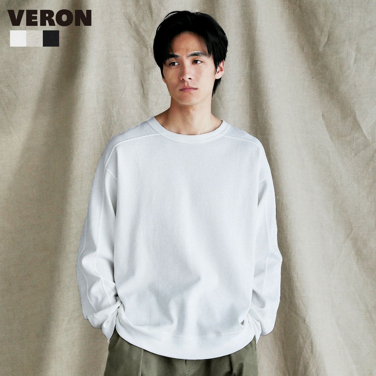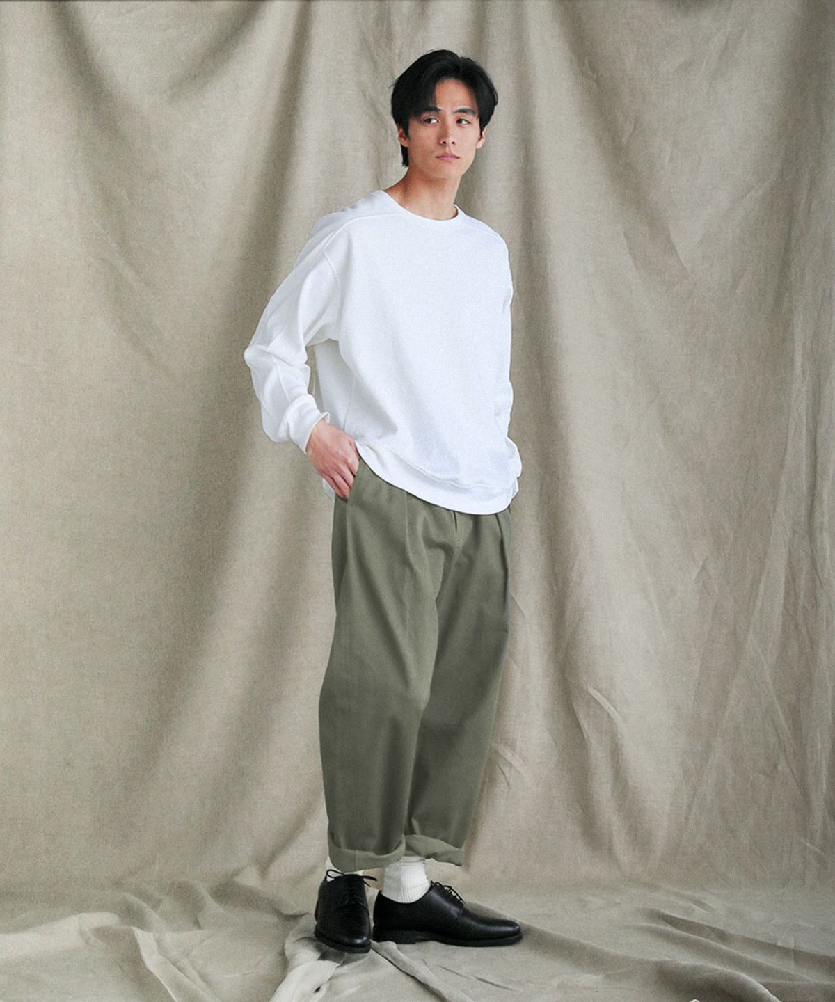 また、程よい厚みの生地なのでシーズンを通して着用でき、ごわつくことなく重ね着を楽しめます。一枚着としてだけでなくインナーとしても着回しができるので、年中活躍間違いなしです。