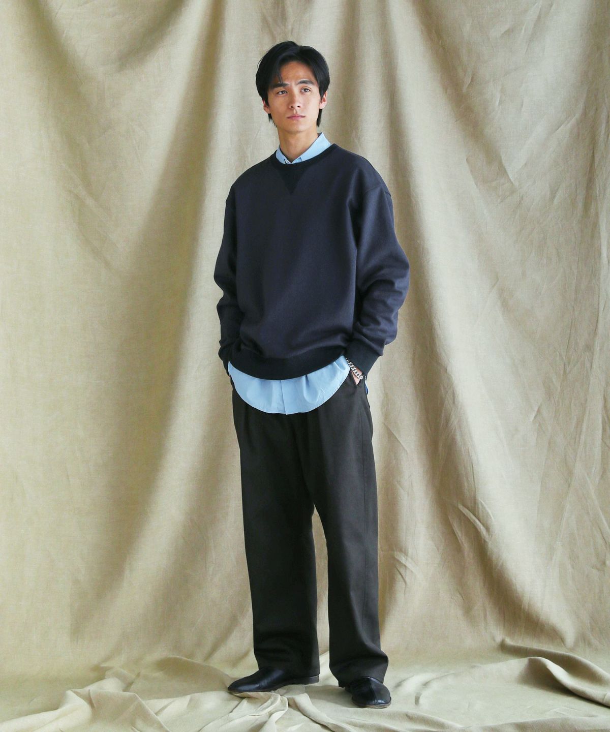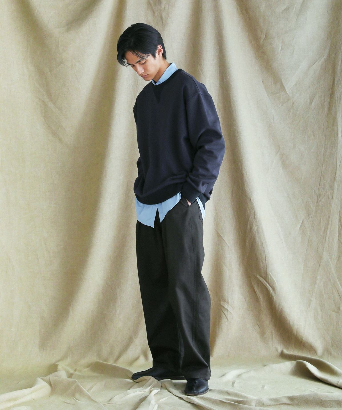 シャツを合わせたキレイめアイテムとしてはもちろん、スウェットなどと合わせたカジュアルなコーデとも馴染みやすく、幅広いコーデに着回していただけるアイテム。裏地がなく適度な厚みの生地感のため、季節問わずオールシーズンご着用いただける一本です。