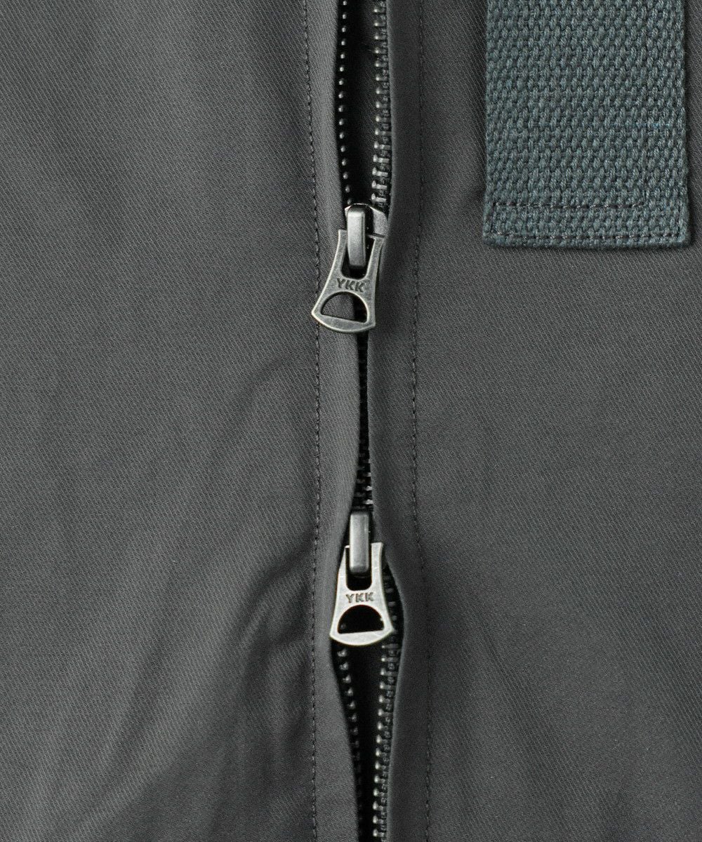 肩のラインをなだらかに見せるドロップショルダーが、自然な抜け感を演出。また、ダブルジップを採用し、上下どちらからでも開閉可能に。スタイリングやシーンに合わせて、抜け感のある着こなしから防寒性を重視したスタイルまで幅広く対応します。斜めに配したフラップポケットは手を差し込みやすく、フリース生地の裏地付きで暖かいハンドウォーマー機能付き。さらに内側には大きな内ポケットも付け、収納力の高い一着に仕上げました。袖口、裾は太めのリブで風を通しにくく、フロントジップの内側には持ち出しも付けてより防風性を高めております。機能性とデザイン性を兼ね備えた、秋冬のシーズンに大活躍の一着です。