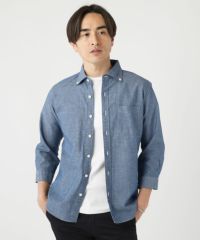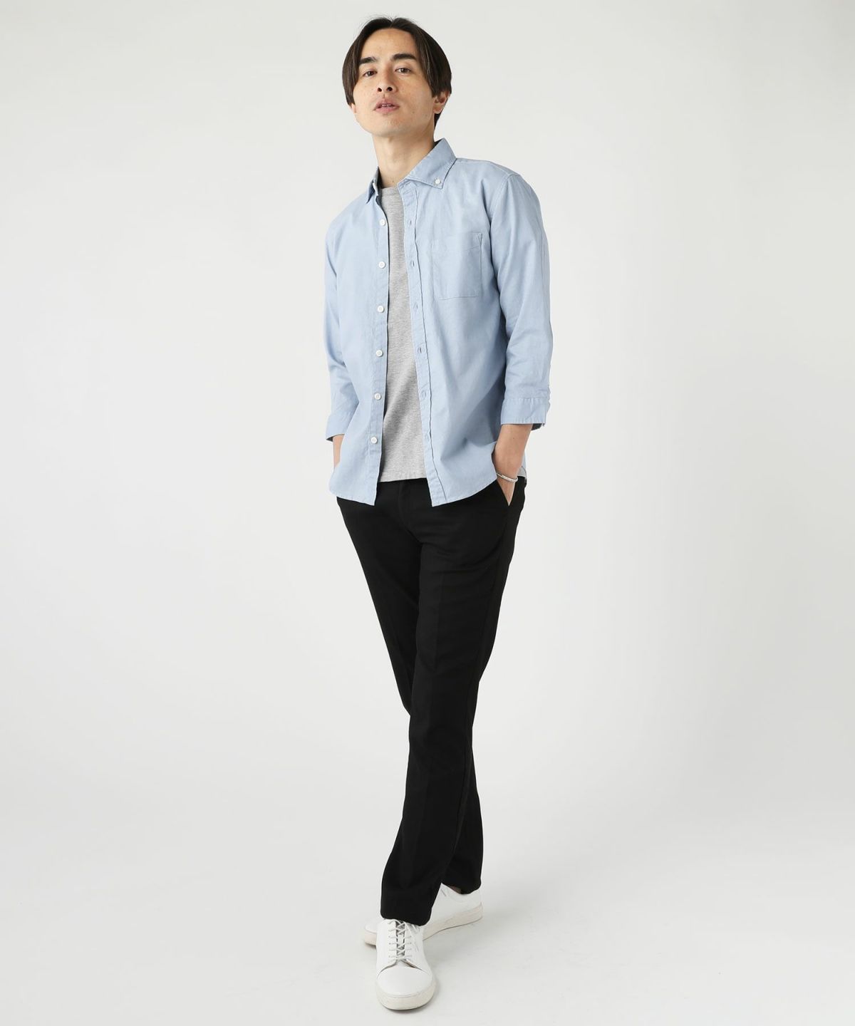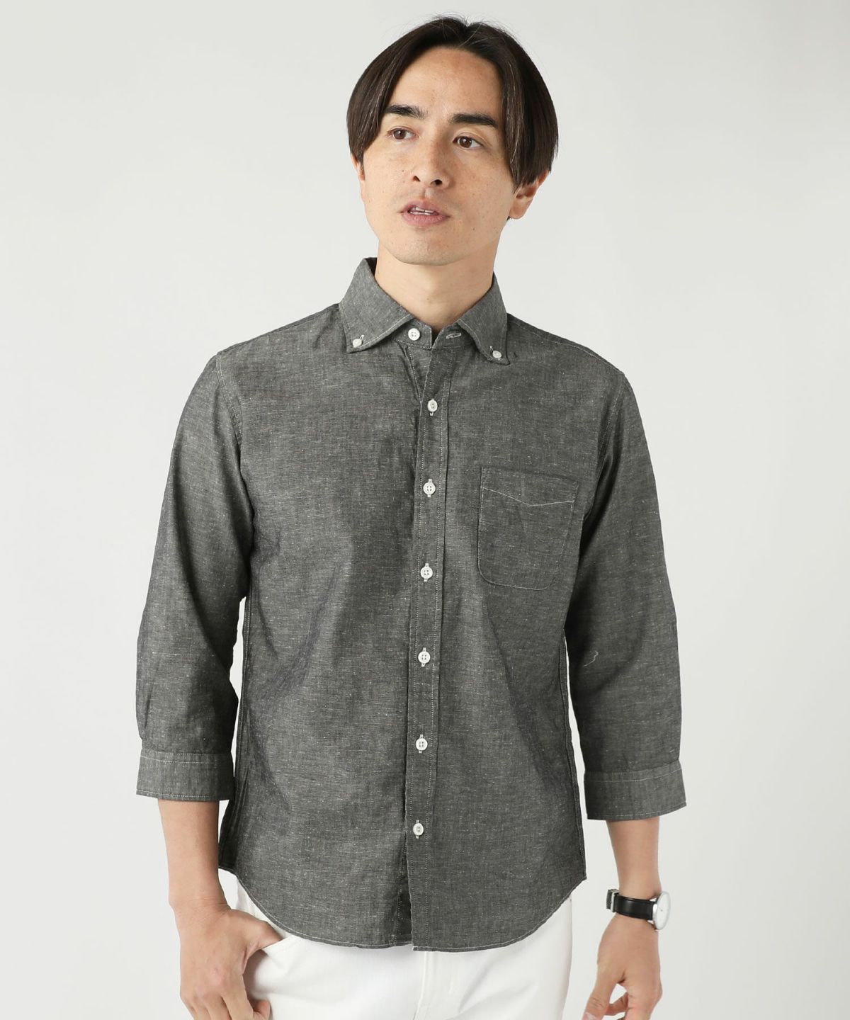 日本製ワイドスプレットボタンダウン七分袖シャツ