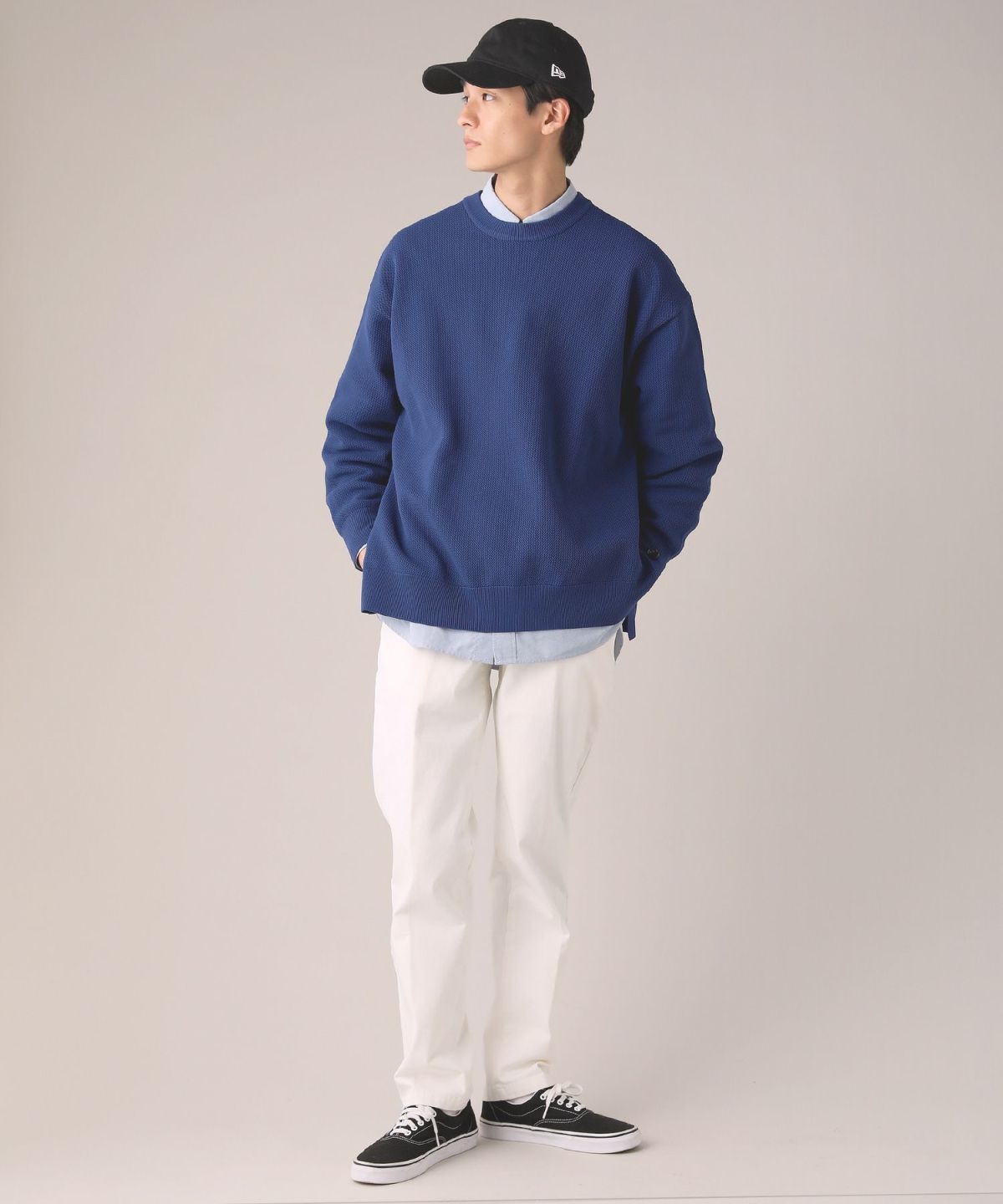 日本製ウールビックワッフル クルーネック長袖ニットソー