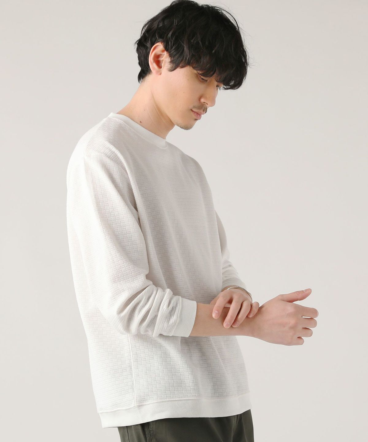 菱柄ジャガードワッフルロールVネックプルオーバー