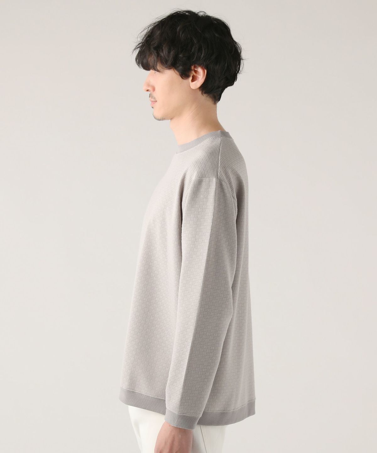 ポンチ×ストライプ布帛切り替え長袖Tシャツ