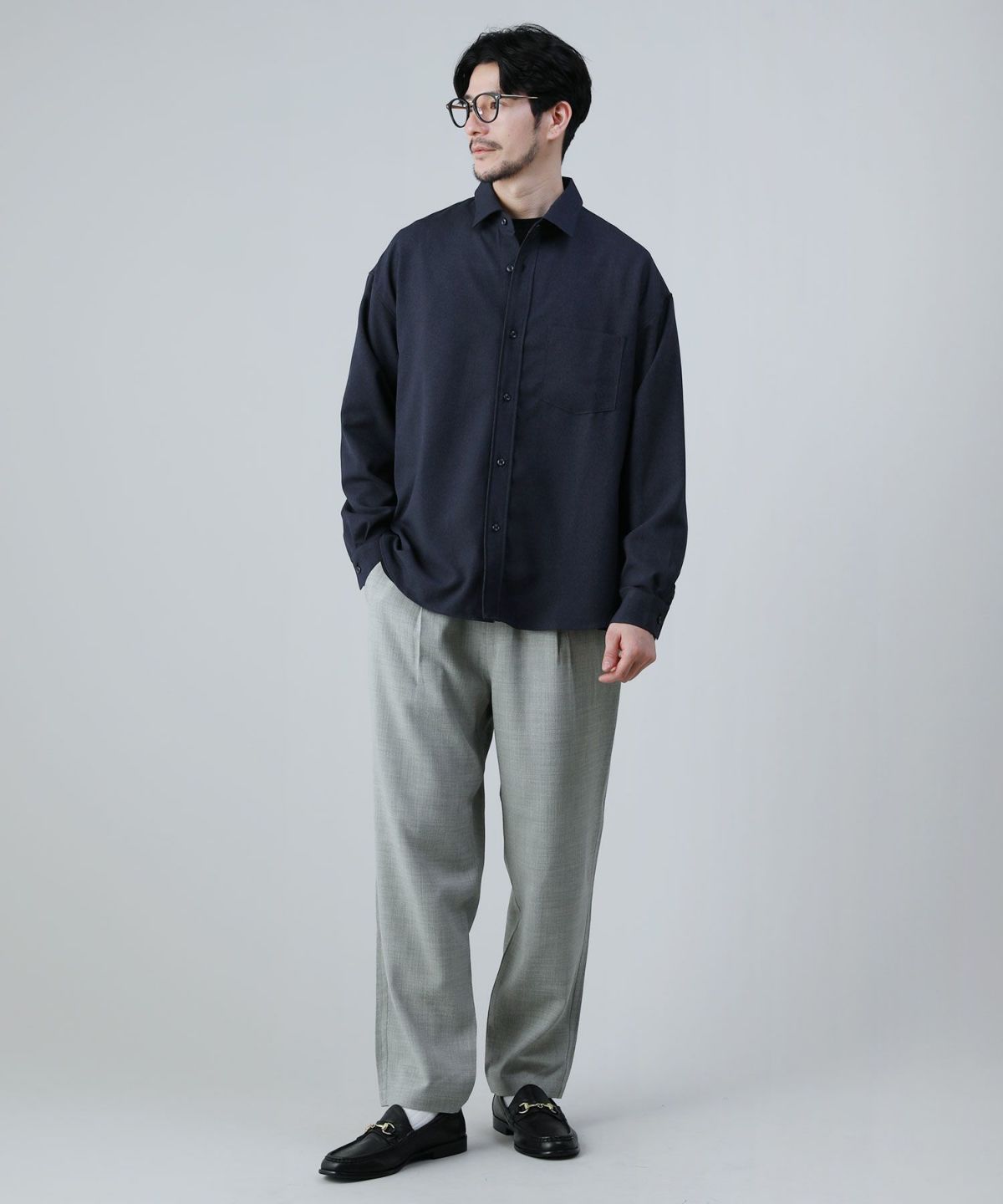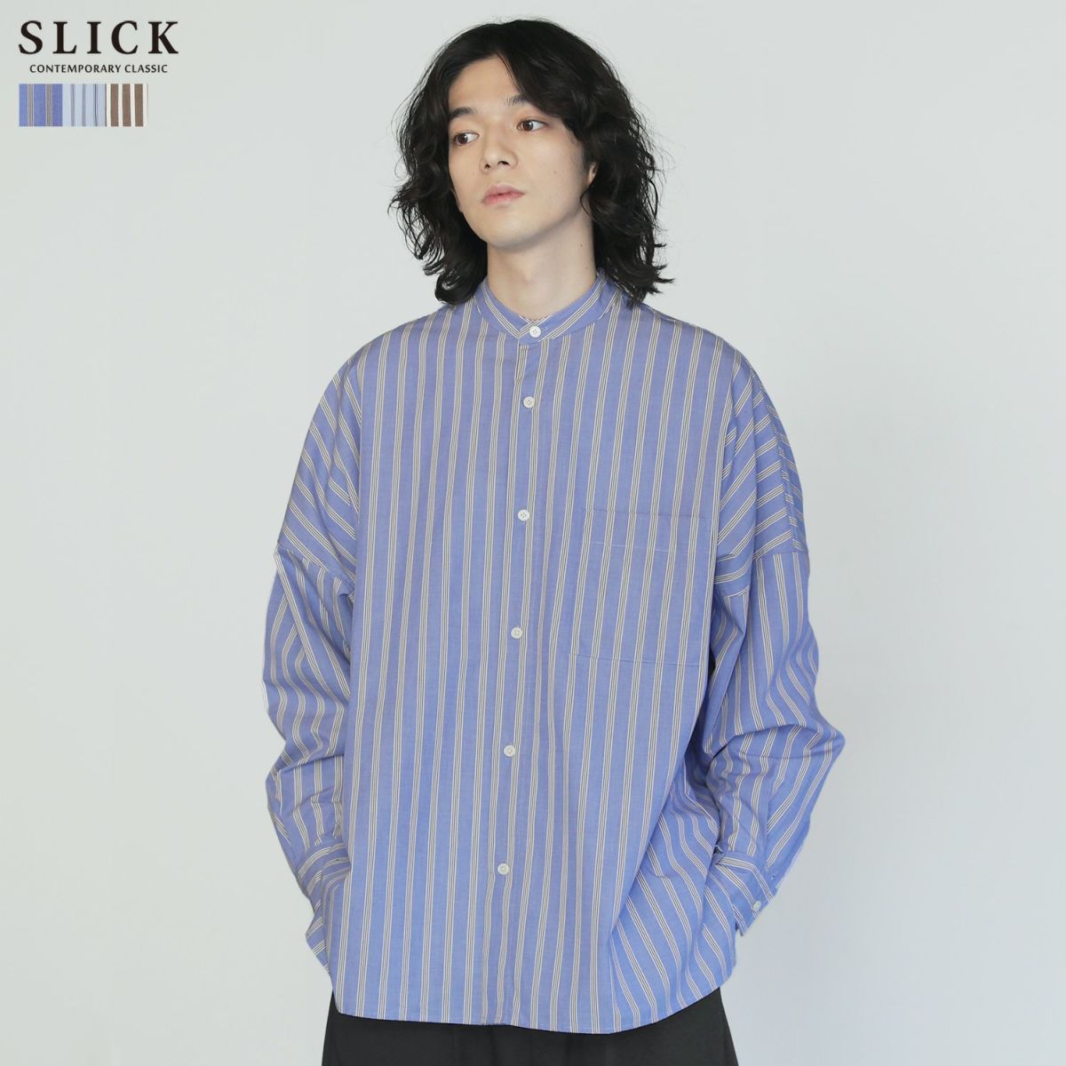 日本製ワンウォッシュバンドカラー長袖テーパードシャツ