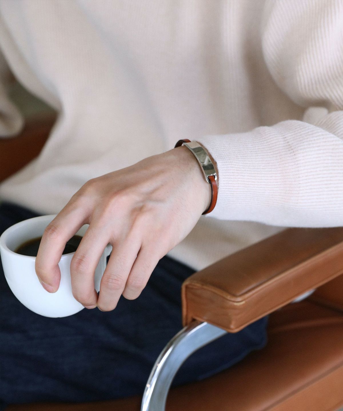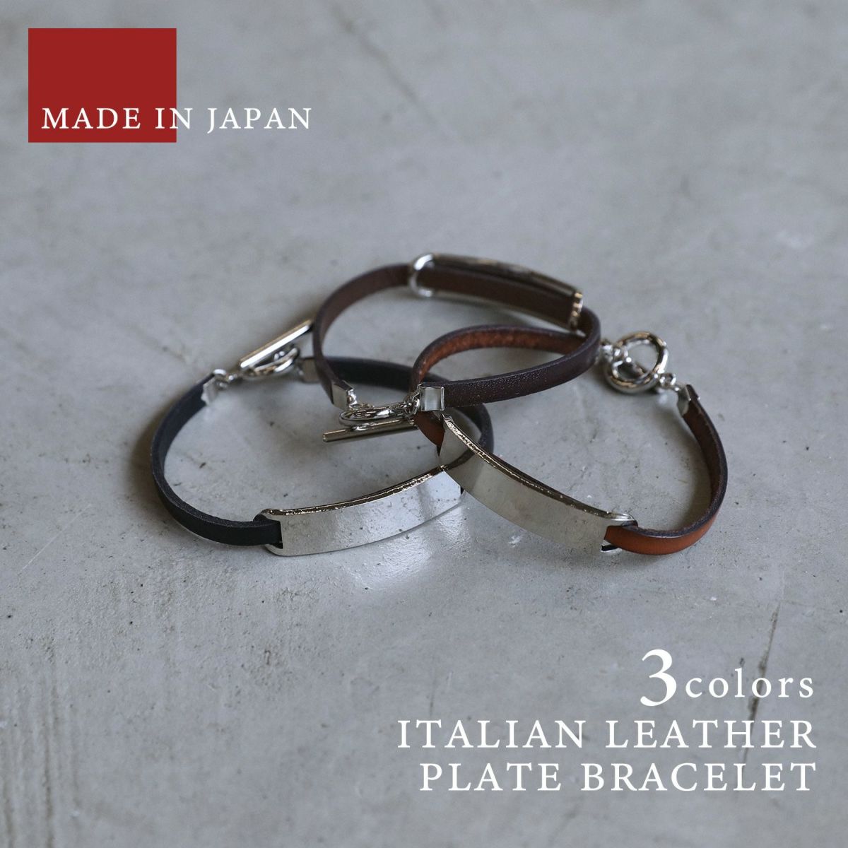 【メール便対応】 日本製イタリアンレザープレートブレスレット