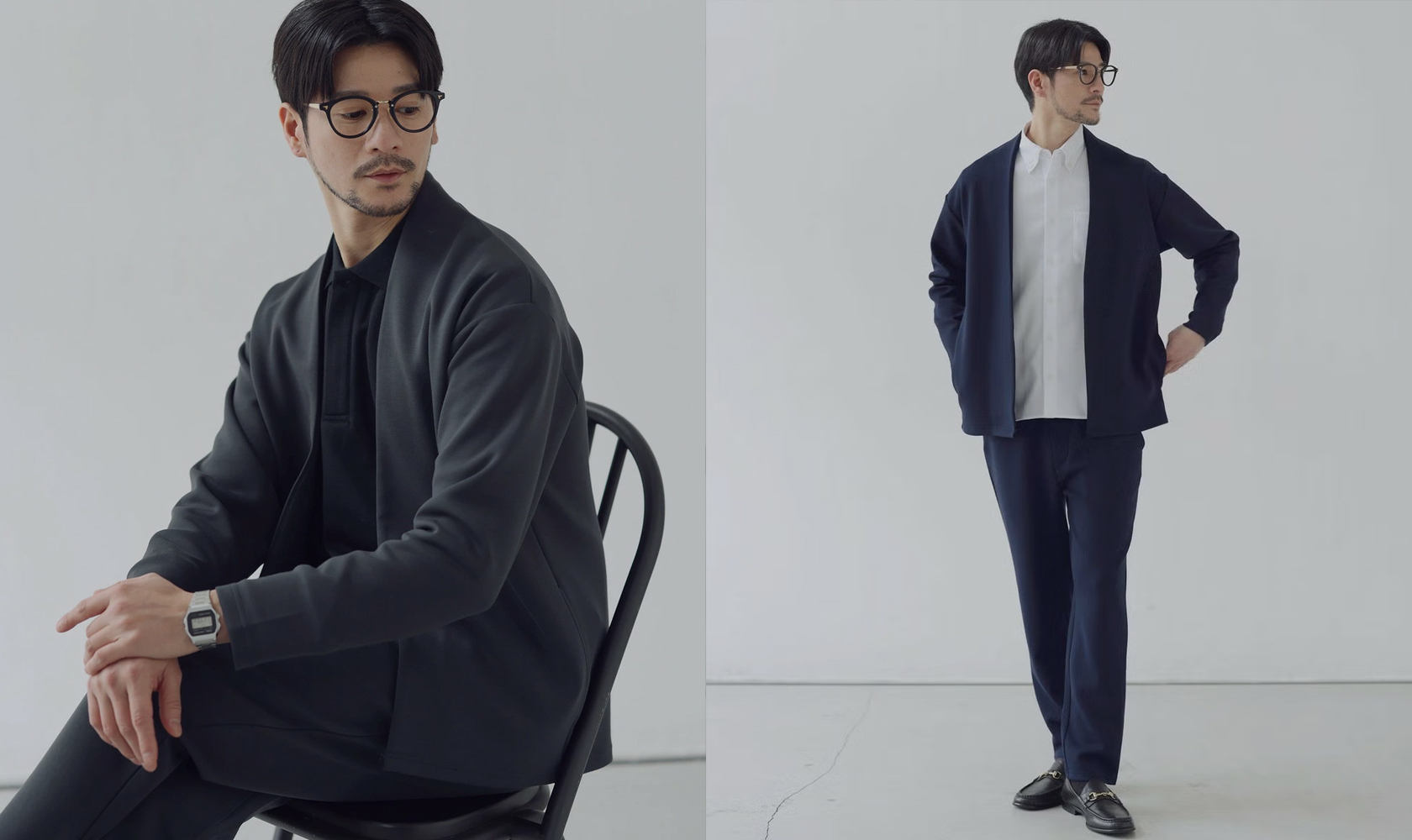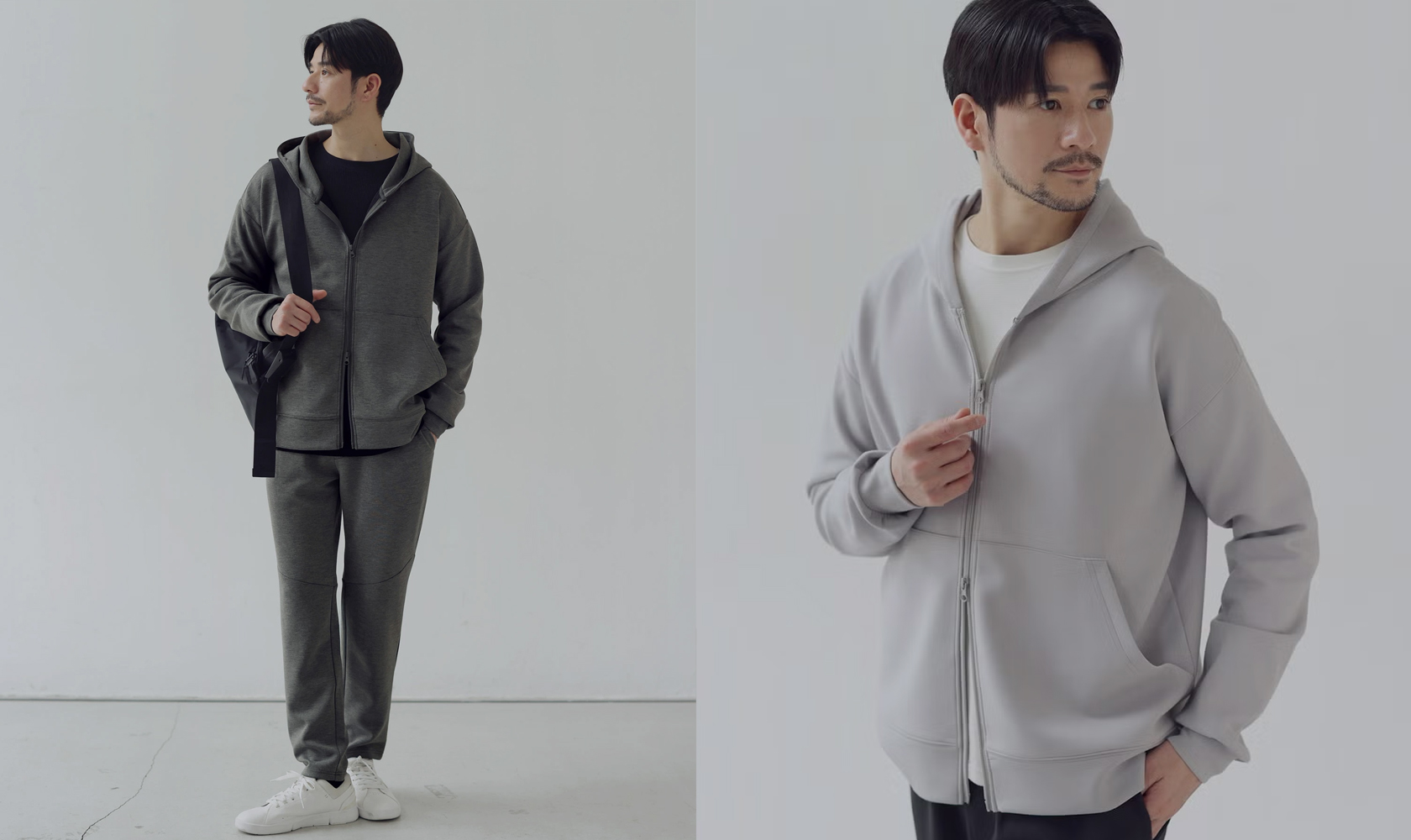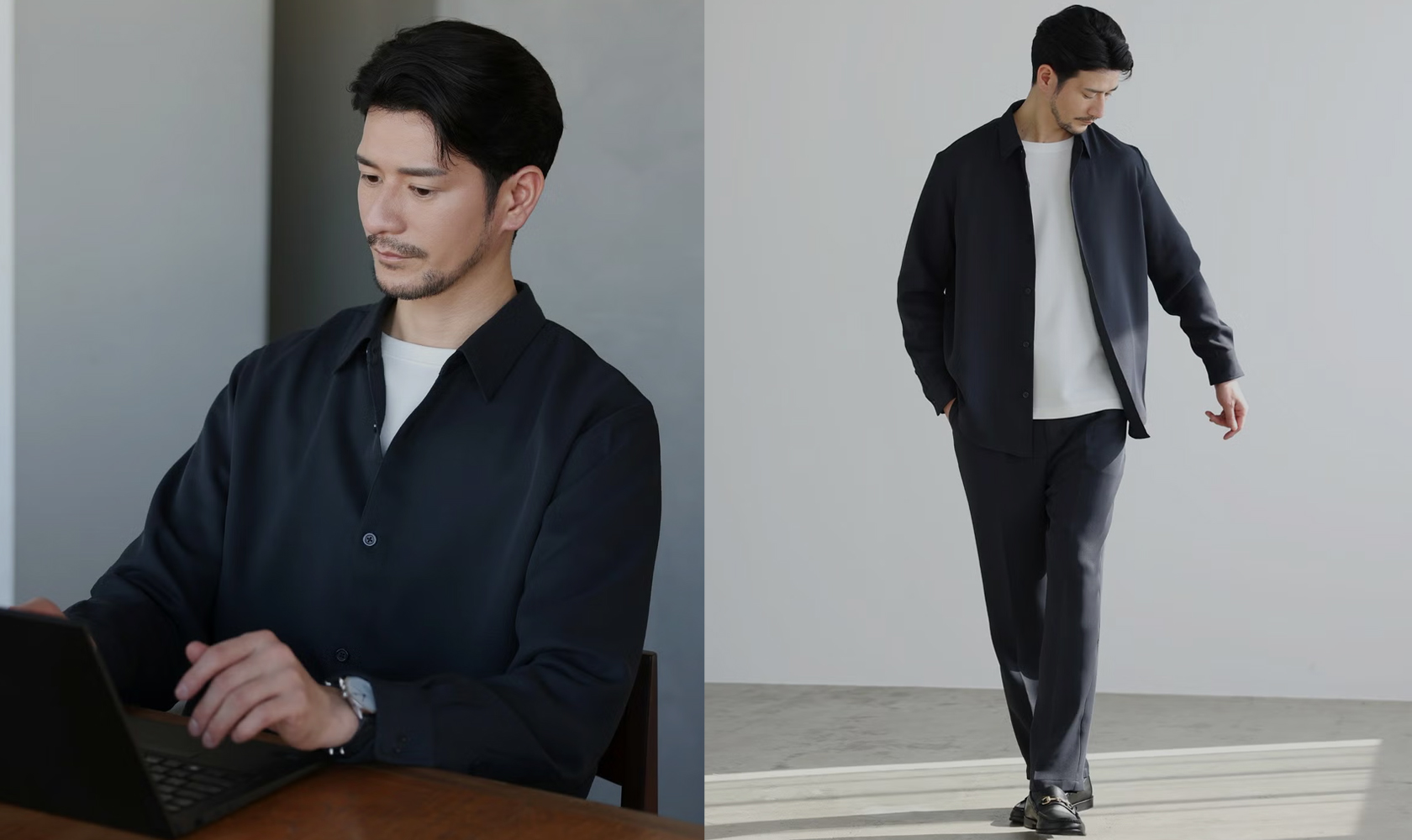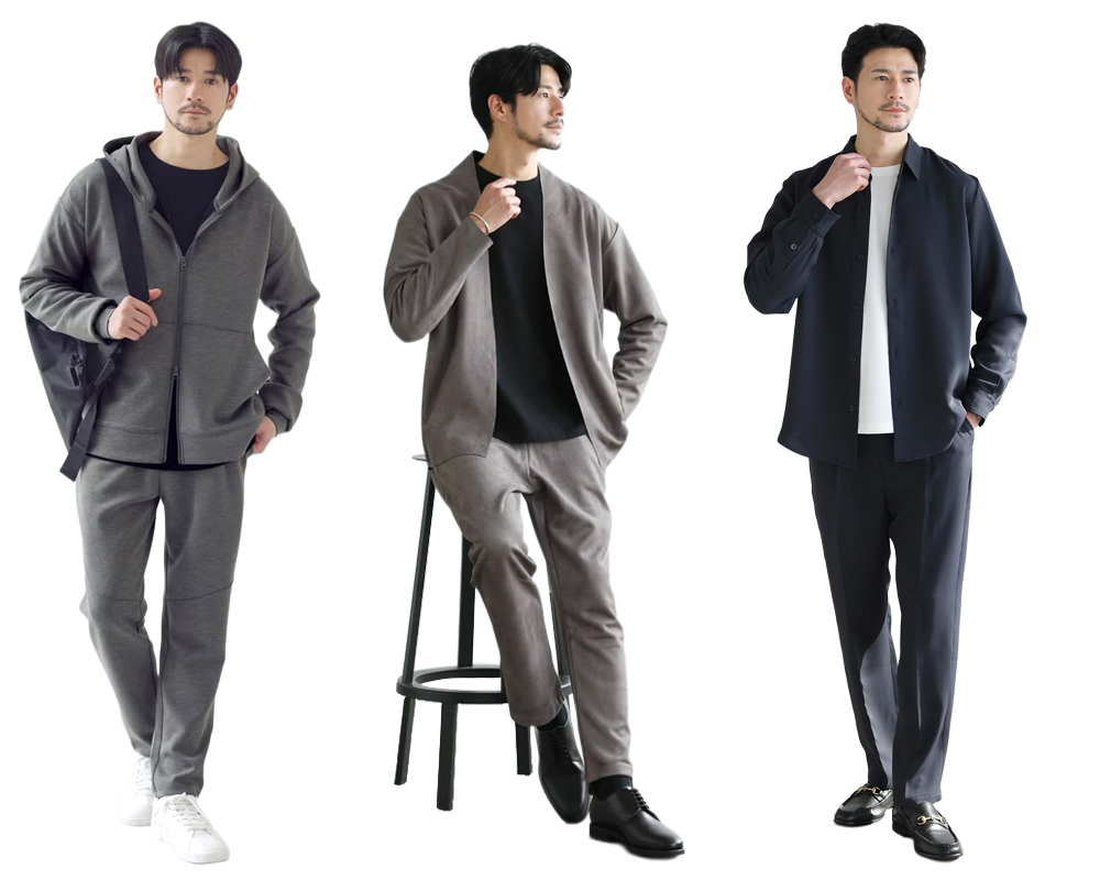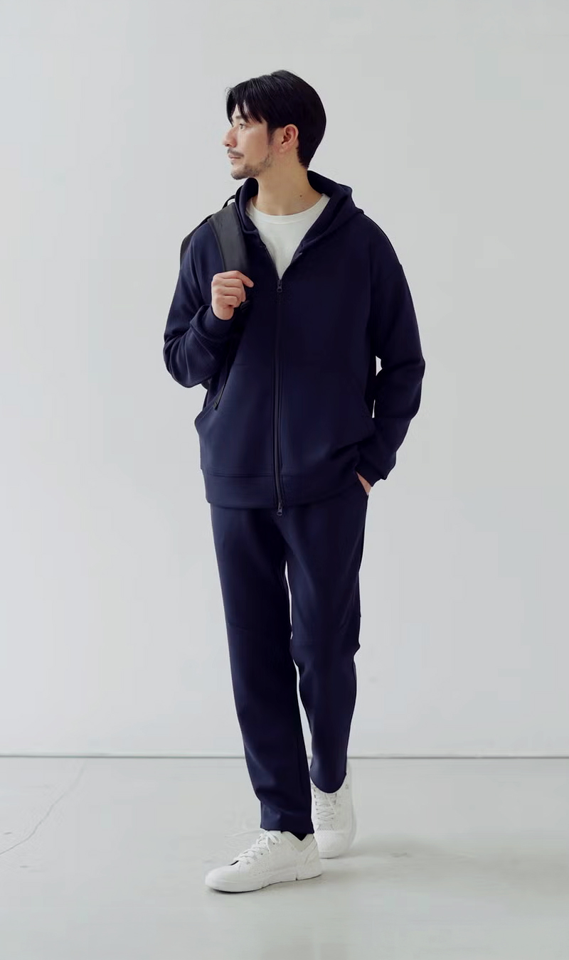 上下が揃っているからこそ、コーディネートに悩まず、スマートなスタイルが完成します。