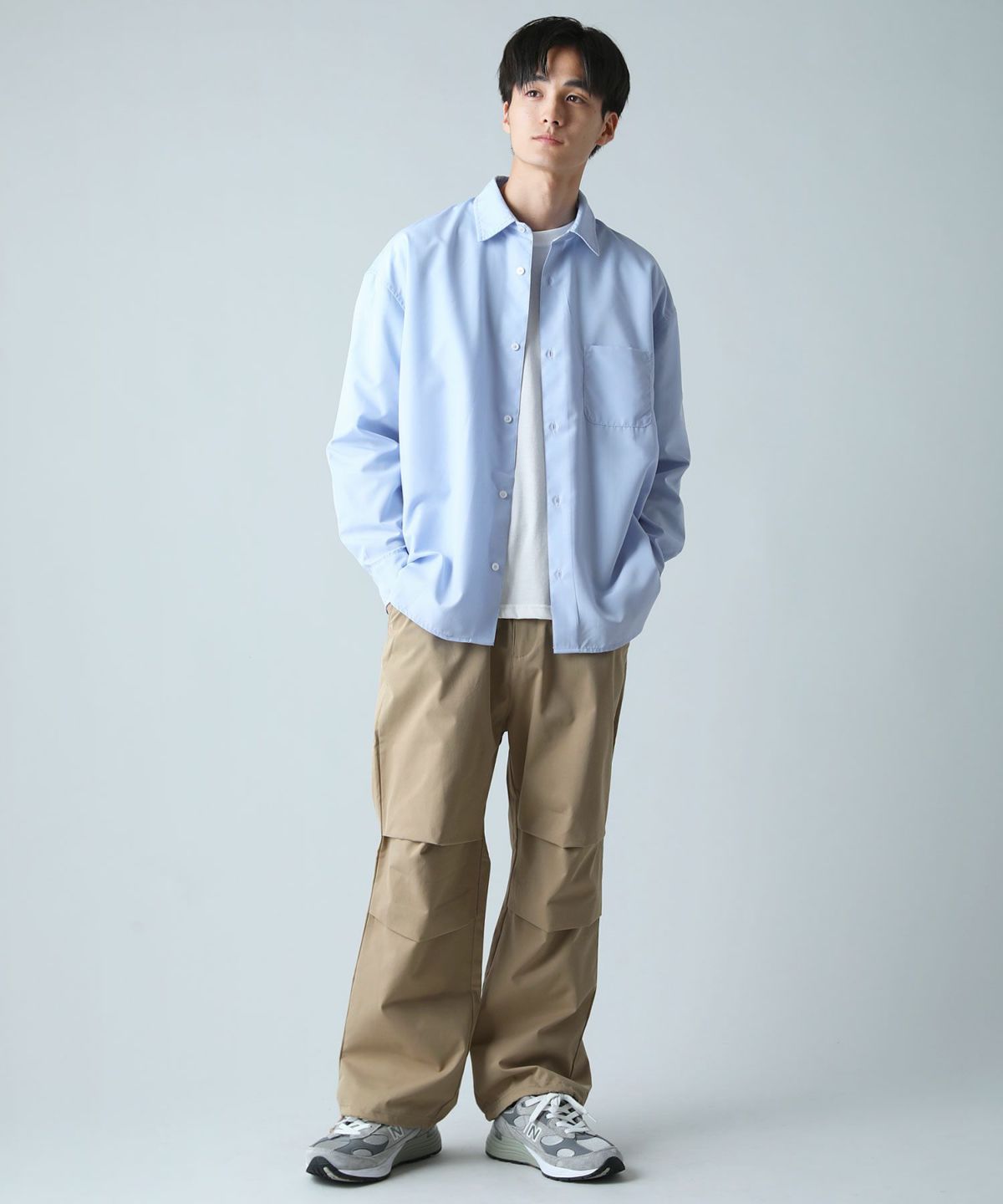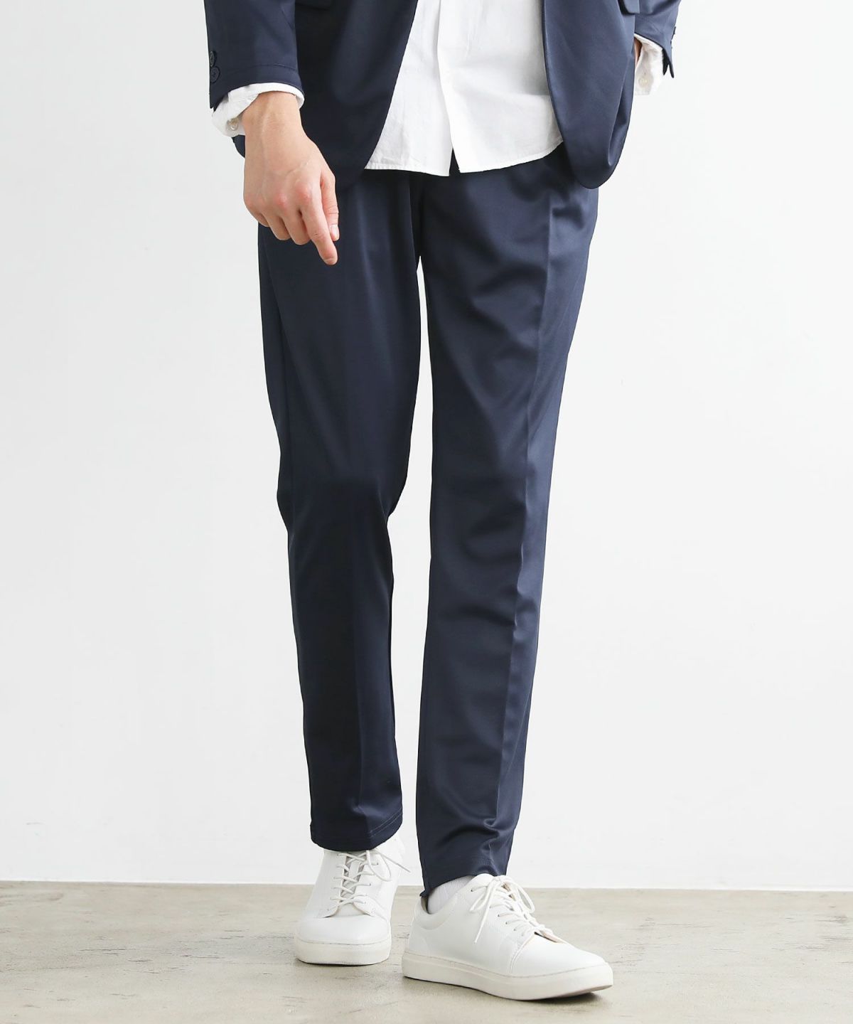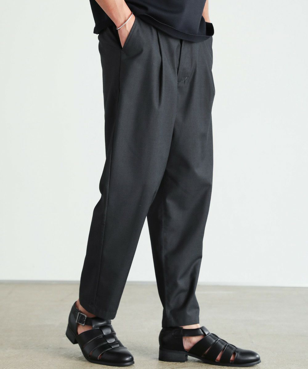 リラクシングシルエットセンタープレススラックスパンツ ポリストレッチ生地/テックリネン生地