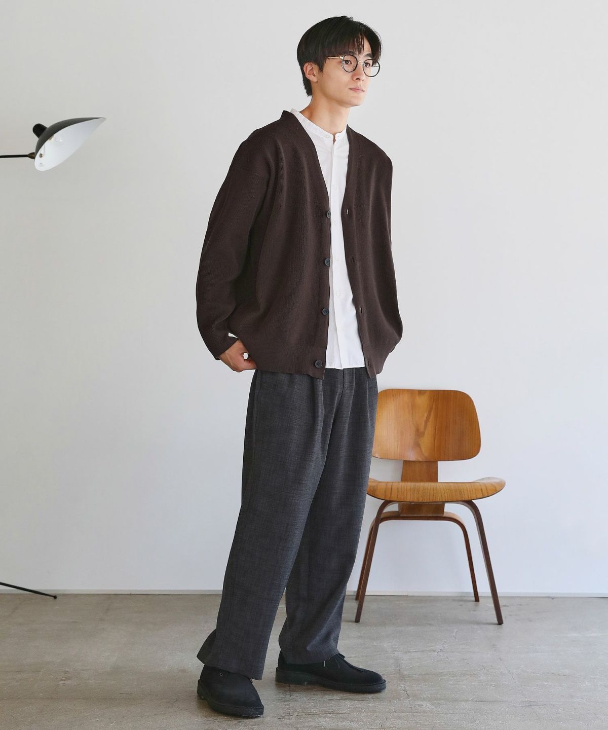 ピーチスキンポンチ/杢ポンチ ノーカラーカーディガン&テーパードパンツセットアップ