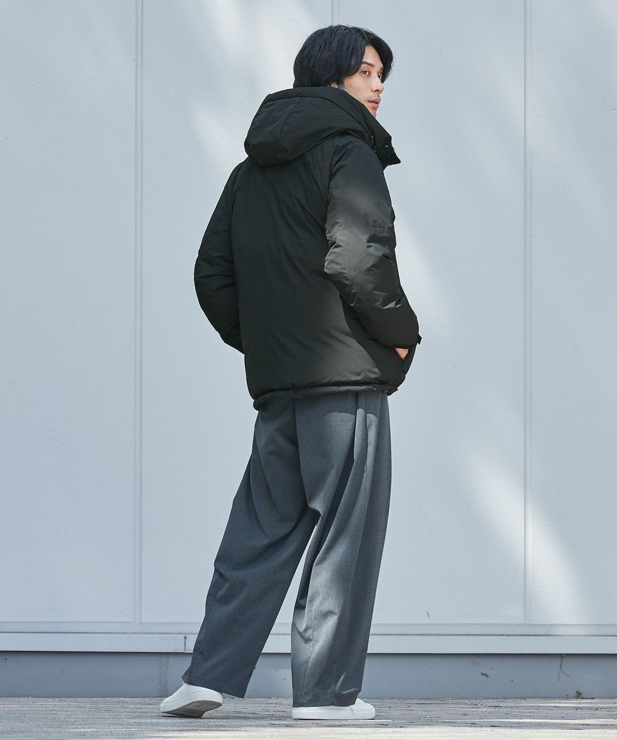 スタンドネックフードボリューム中綿ジャケット