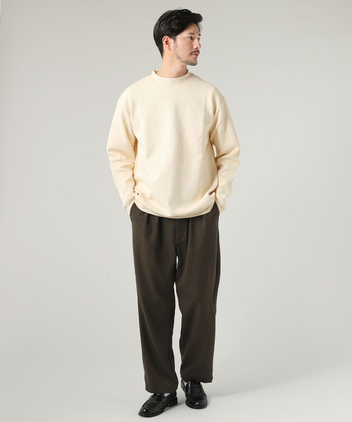 他の画像を見る Upscape Audience 日本製LANATEC(ラナテック)LEI(レイ)ポリエステル ウールライク サージ 2タックイージーワイドパンツ ¥ 12,100 税込 在庫切れ カートに入れる お気に入りに登録する